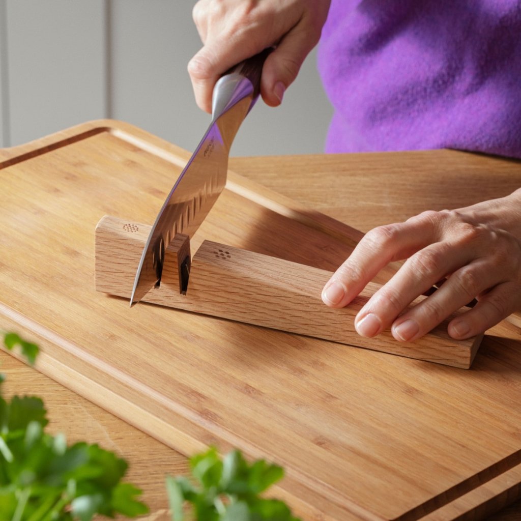 - l'utilisation régulière de l'affûteur permet de maintenir une qualité de tranchage élevée et d'éviter le recours à un affûteur professionnel
