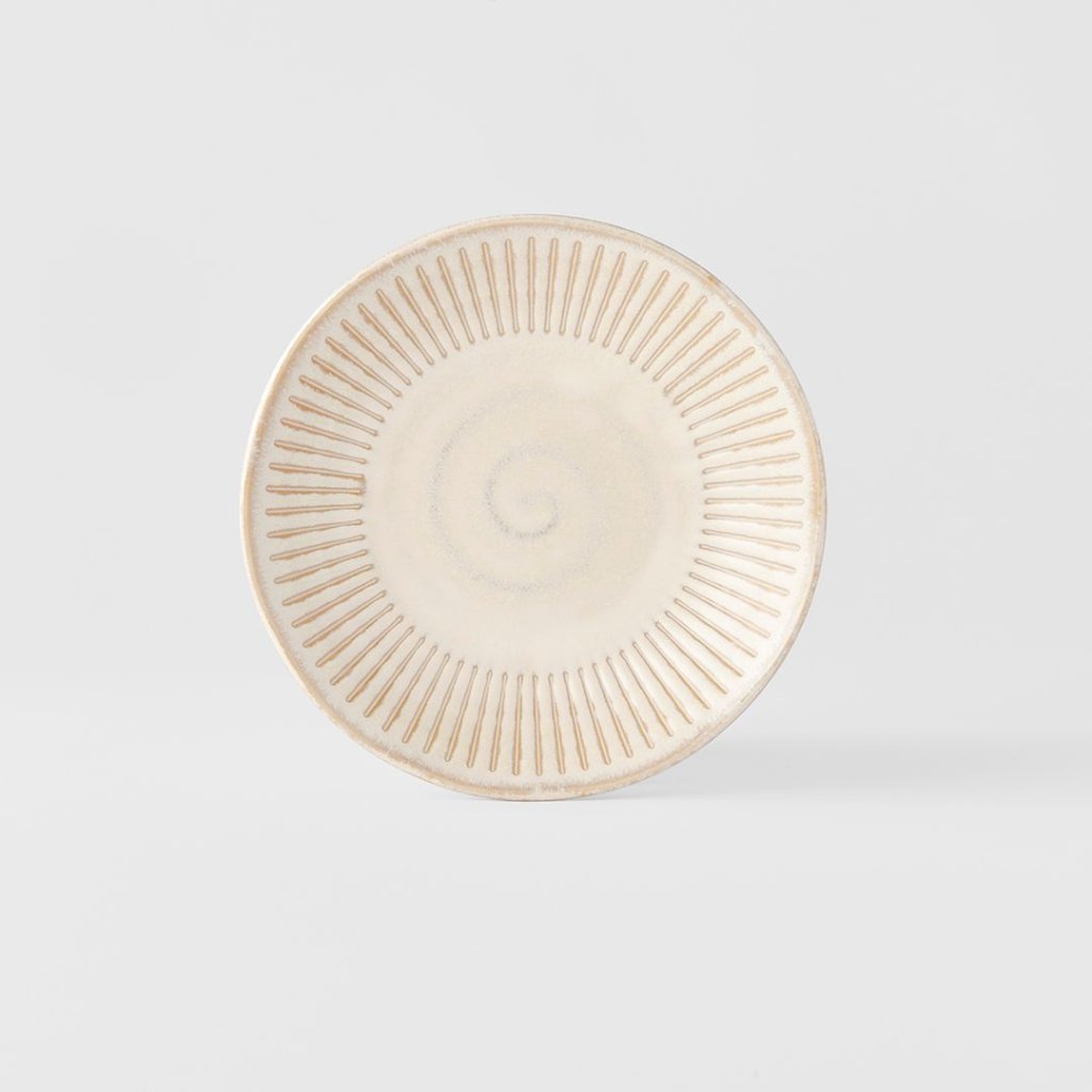 - Assiette à tapas RIDGED ALABASTER d'un diamètre de 16 cm apporte un émail beige mat délicat avec une transition douce et un relief radial qui donne à chaque service une expression calme et naturelle.