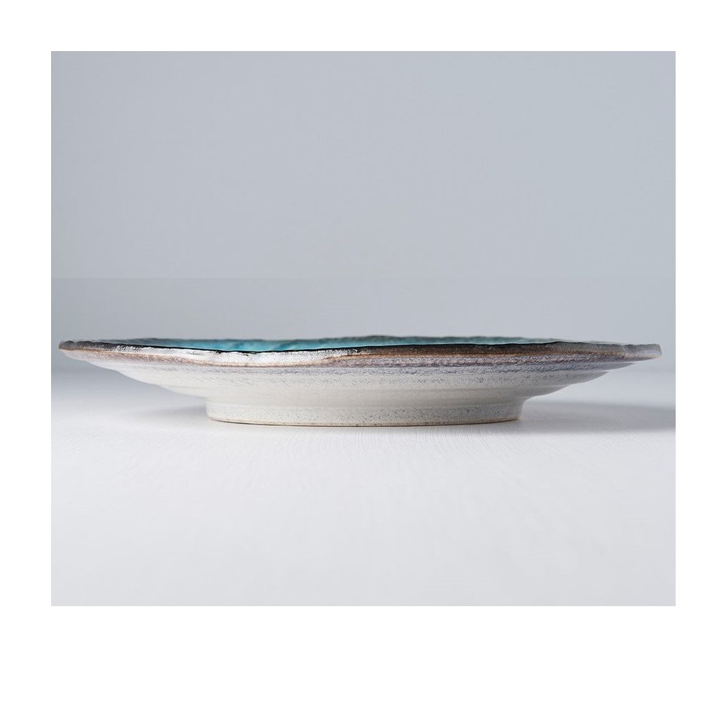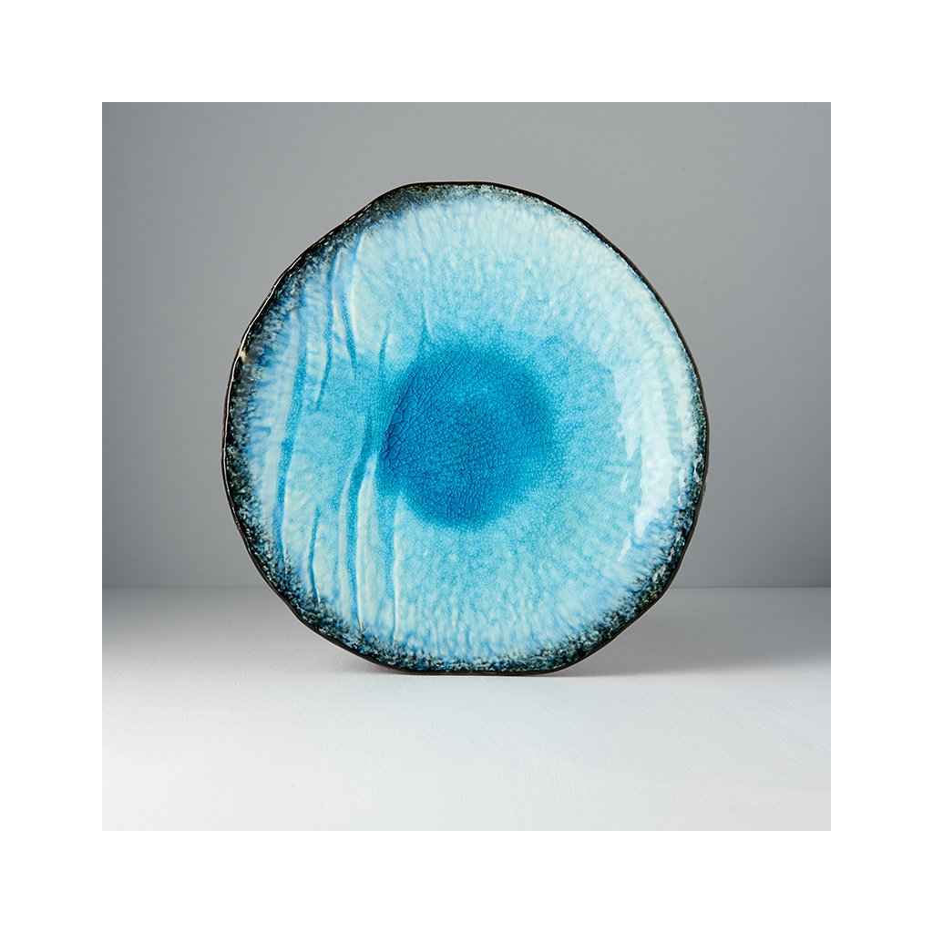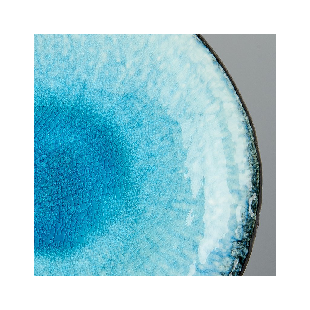 Les plats de la collection Sky Blue vous transporteront à la mer. Sa couleur turquoise profonde évoque la mer claire et limpide et son bord brun rappelle le littoral. Les plats de cette collection ont une surface brillante avec un glaçage craquelé. Le bord irrégulier indique un travail fait à la main.