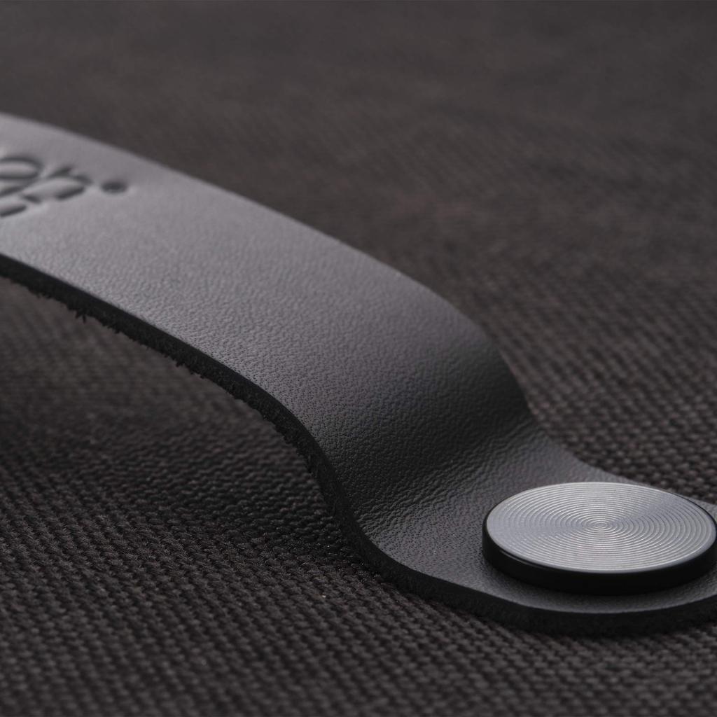 - Le couvercle recouvert de tissu est complété par une poignée en cuir qui facilite la manipulation tout en soulignant son design raffiné.