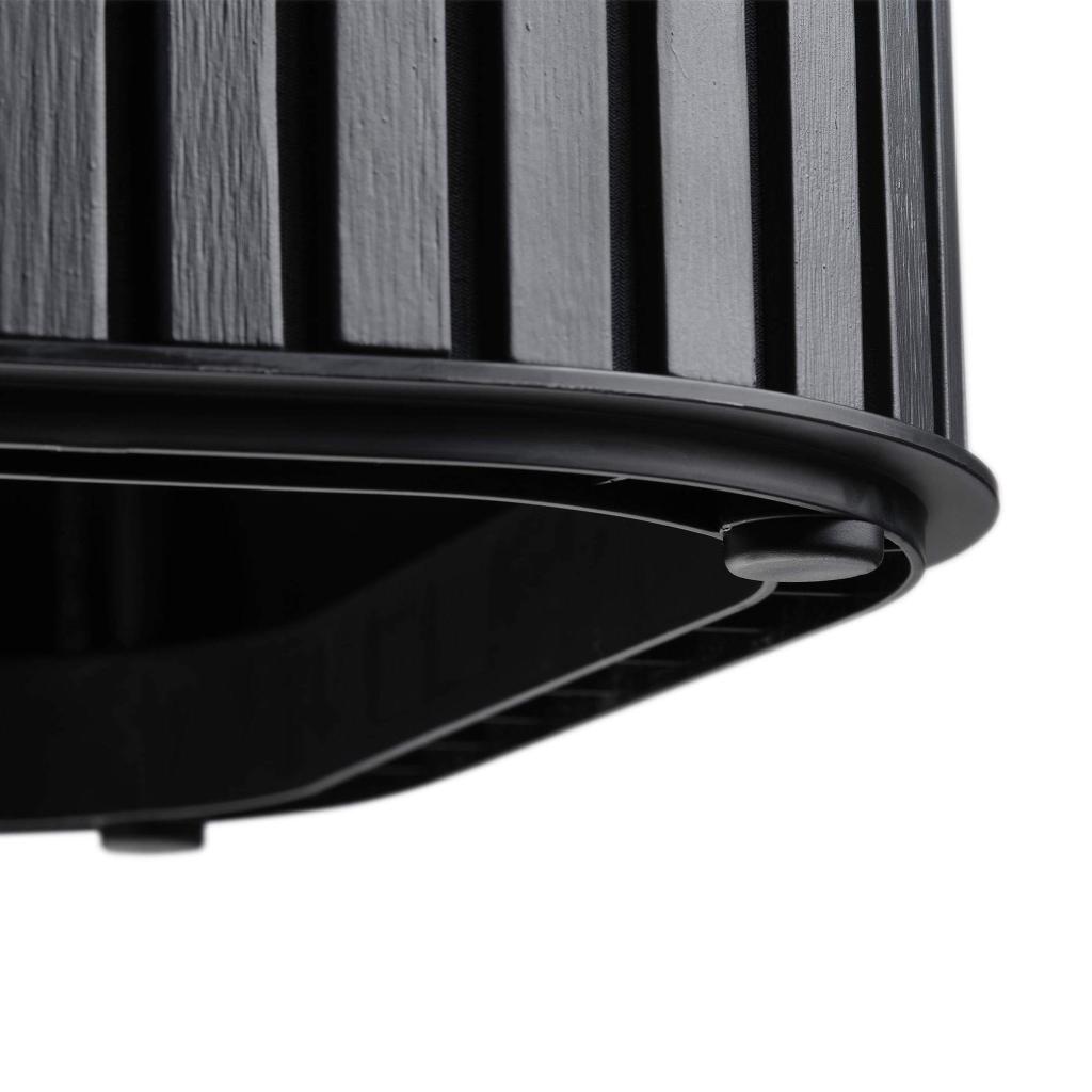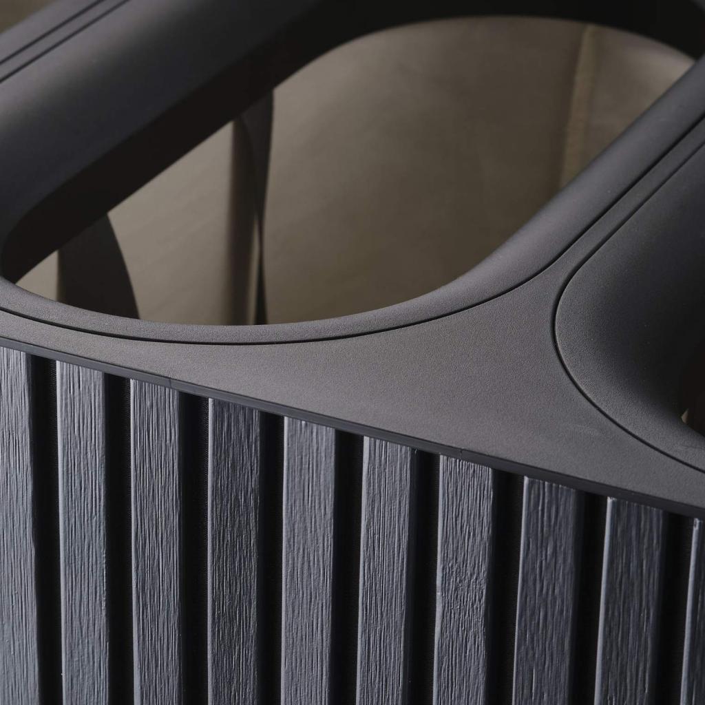 - La finition noire avec un design vertical à lamelles est moderne et s'intègre facilement à différents styles d'ameublement.