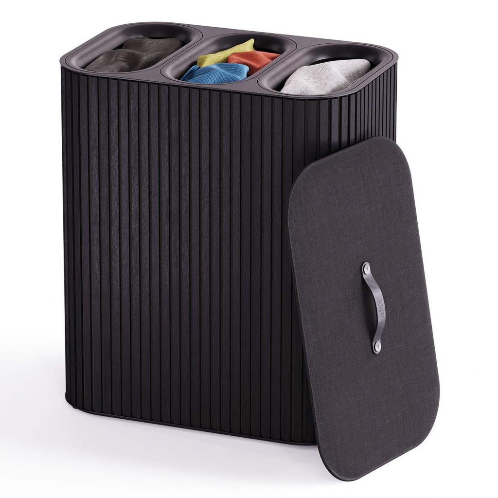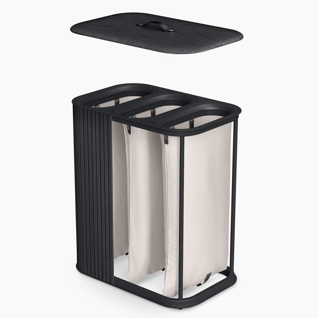 - Bac à linge Joseph Joseph TOTA TRIO LUXE en noir est une solution élégante et pratique pour trier le linge dans un foyer moderne.