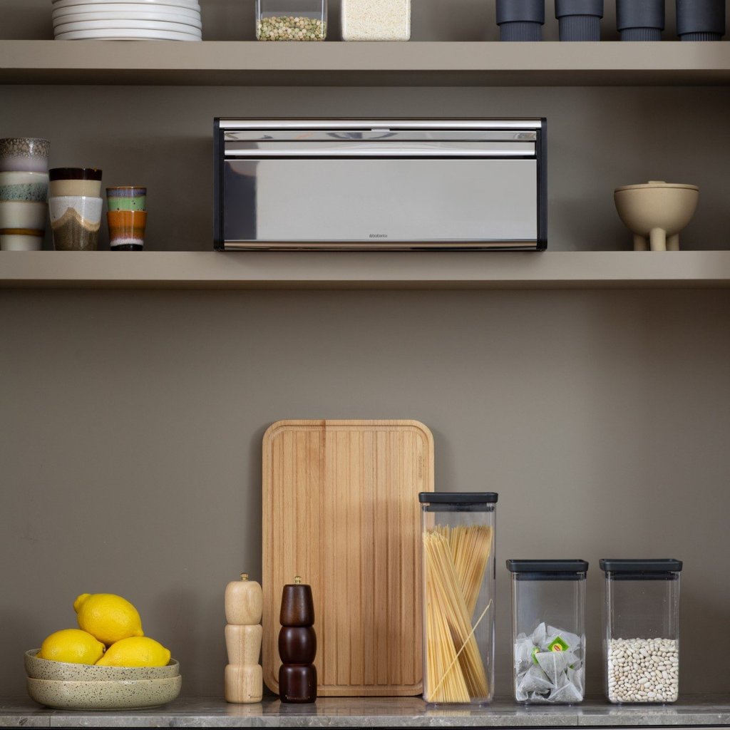 - pratique boîte à pain Brabantia FALL FRONT est conçu pour stocker jusqu'à deux pains sans prendre de place inutilement