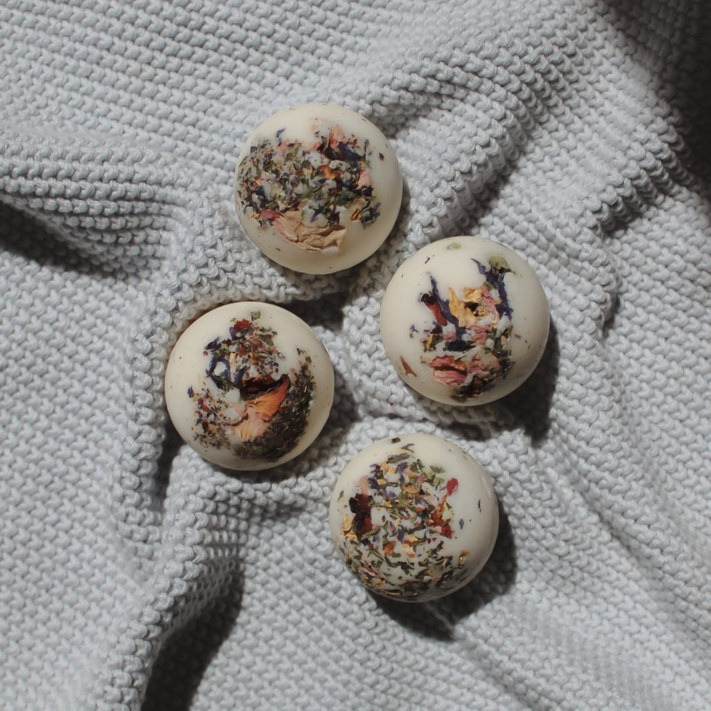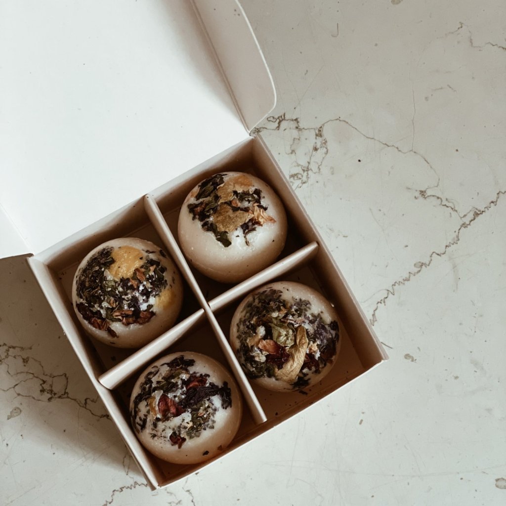 - le coffret contient quatre boules de crème de bain faites à la main qui prennent soin de la peau et lui procurent une hydratation durable et une sensation de fraîcheur