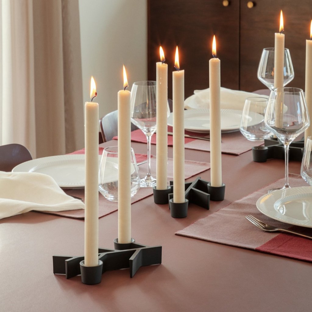 - permet d'accueillir deux bougies coniques et est idéal pour créer une atmosphère chaleureuse le soir