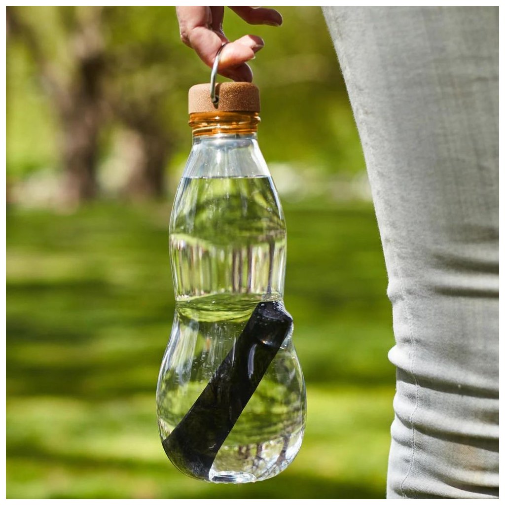 - remarque : il est important que le charbon de bois s'insère bien dans la rainure, même s'il semble y être à peine. Si vous forcez le charbon à pénétrer dans l'espace, vous risquez de faire éclater la bouteille. Vous remarquerez une amélioration du goût après l'insertion du binchotan au bout d'une heure environ. Utilisé quotidiennement pour filtrer 1,1 litre d'eau, chaque bâtonnet dure environ 3 mois, après quoi vous pouvez le réactiver pour 3 mois supplémentaires en le plaçant dans de l'eau bouillante pendant 10 minutes et en le laissant sécher complètement.