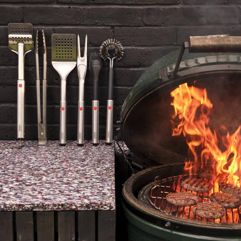 - Il fait partie de la série GRILLOUT, qui comprend divers outils BBQ - pinces, tourneur, fourchette, brosse ou brosse.
