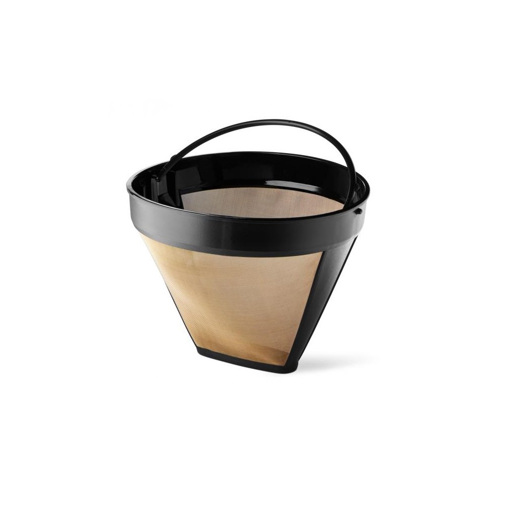 La cafetière permet un arrêt automatique, dispose d'une fonction de pause et de versement. Il peut garder le café chaud jusqu'à 40 minutes après l'infusion. Il est doté d'un filtre réutilisable permanent de couleur or, sur lequel figure un indicateur de tasse, ce qui vous permet de toujours verser exactement la quantité de café dont vous avez besoin. Le filtre remplace les filtres en papier classiques à cône de taille 4 (ne jamais les utiliser ensemble). Il passe au lave-vaisselle (sur le plateau supérieur), a une conception durable, est facile à utiliser et à nettoyer.