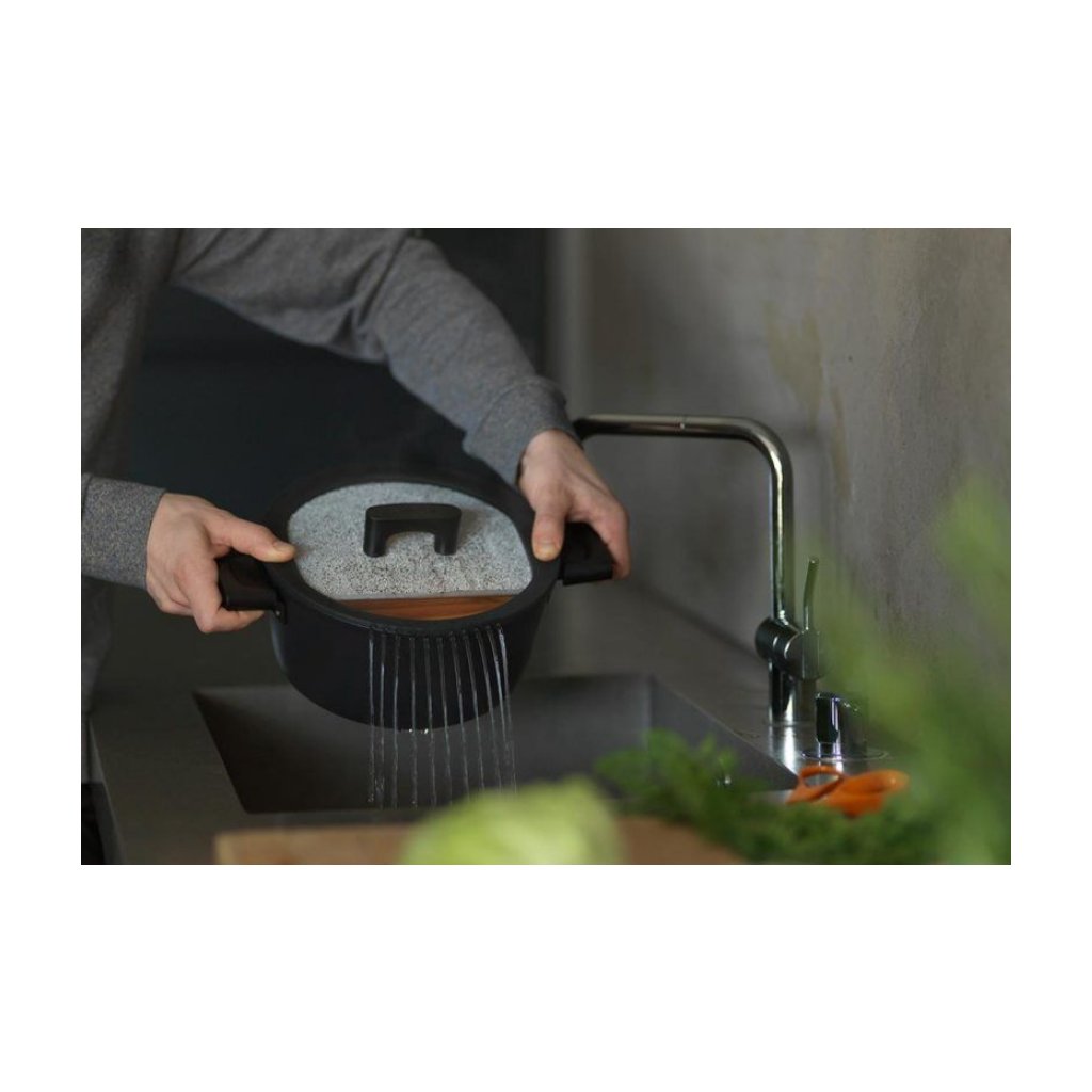 - le fond très épais distribue la chaleur de manière uniforme et efficace