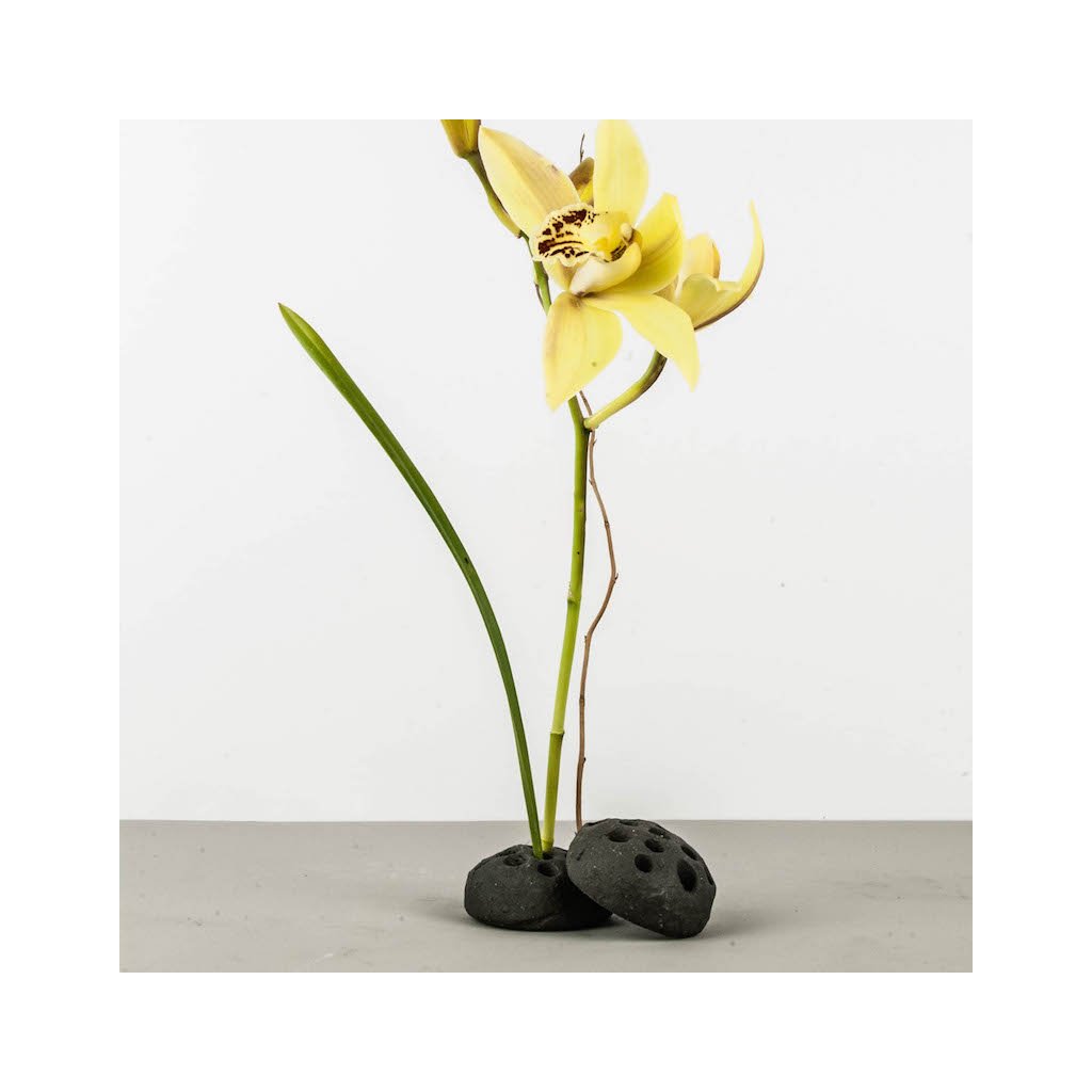 La base en céramique noire avec des trous pour insérer des fleurs (artificielles, séchées ou autres décorations) peut aussi être utilisée par exemple pour des baguettes. Il s'agit d'une forme de décoration inhabituelle mais courante au Japon.