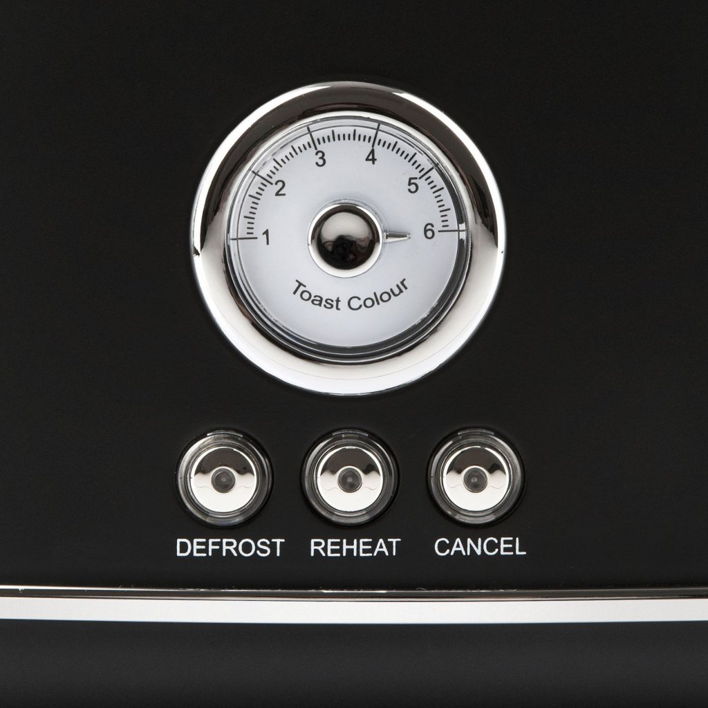 - La couleur mate noir combinée à des éléments chromés confère à l'appareil un look élégant et rétro