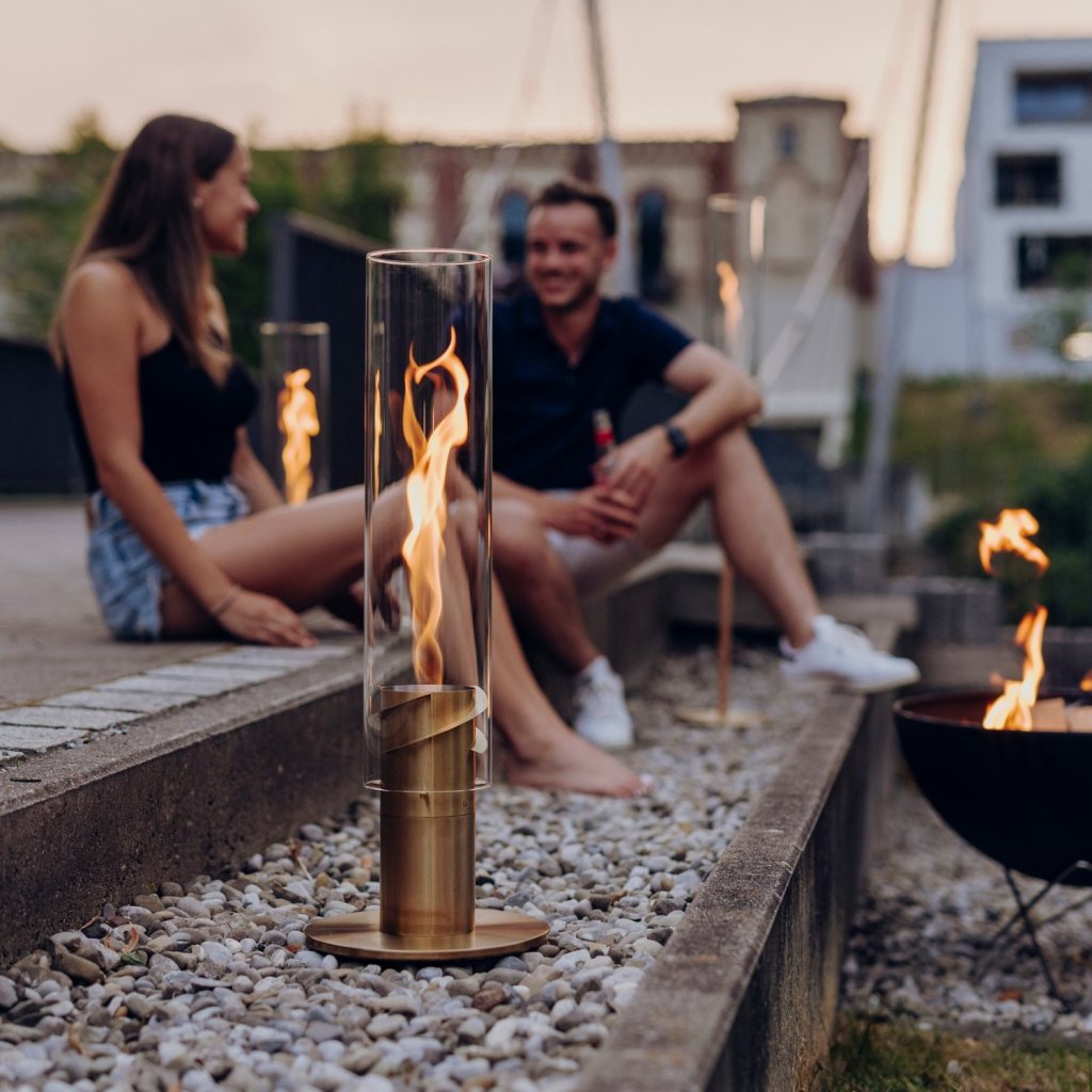 - le cylindre de verre protège la flamme du vent et sert également de barrière de sécurité, ce qui permet d'utiliser la cheminée en toute sécurité, même en présence d'enfants ou d'animaux domestiques