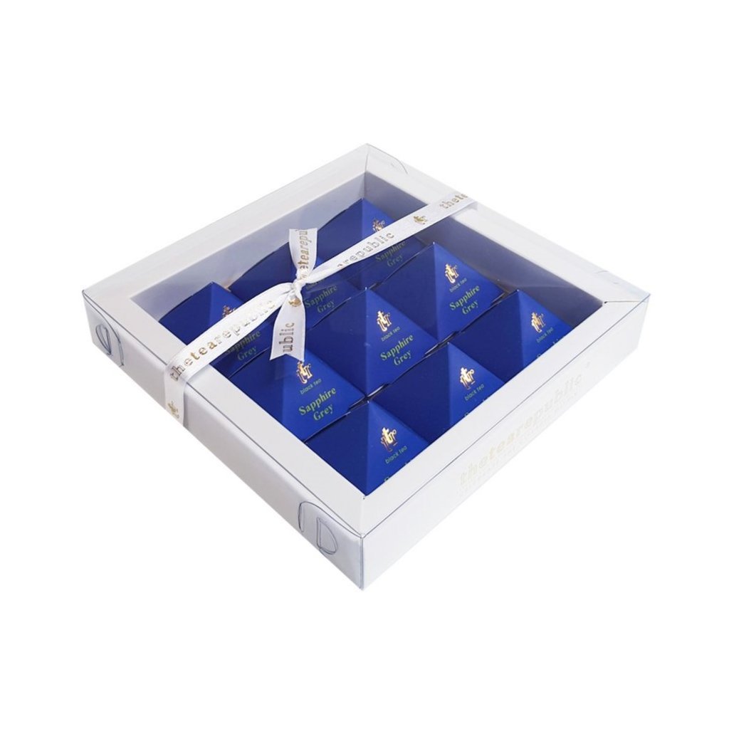 Coffret cadeau de thés SAPPHIRE GREY, 9 pyramides de thé, The Tea Republic