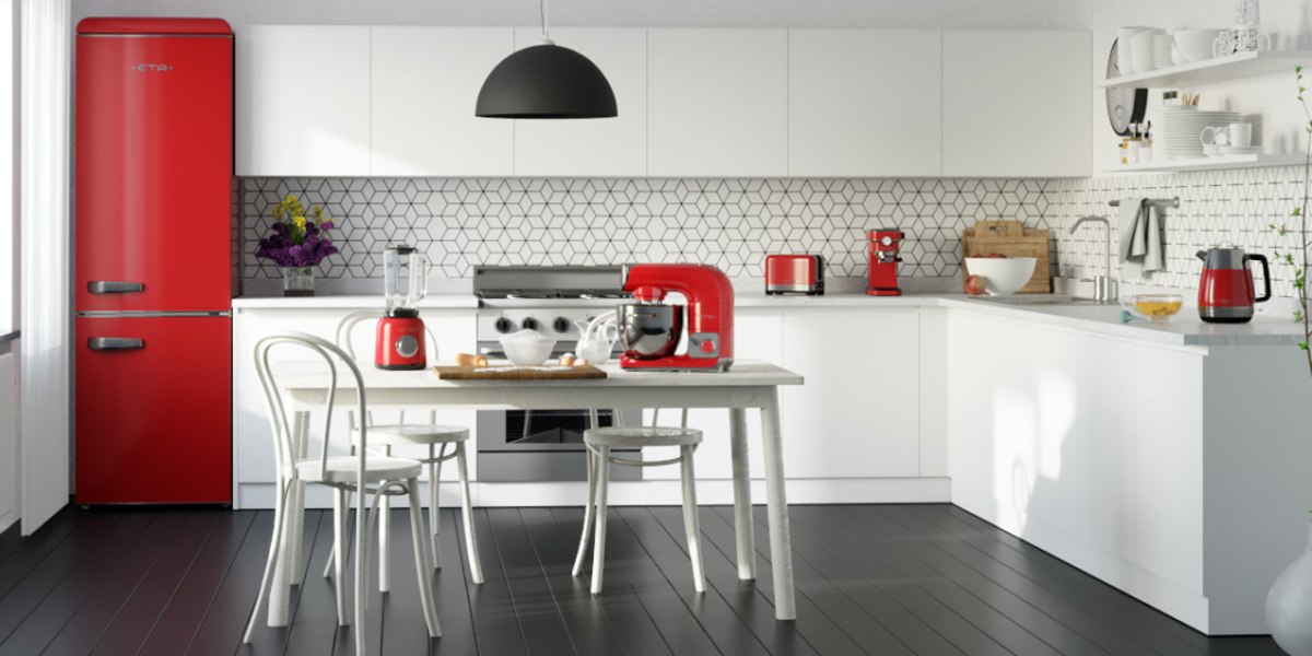 Les cuisines minimalistes modernes blanches, noires ou grises gagnent à être réhaussées avec des accessoires rouges. Ils s'accordent parfaitement aux éléments de cuisine en béton, et même avec leur côté retro ils vont bien avec les cuisines modernes et les cuisines au style industriel.