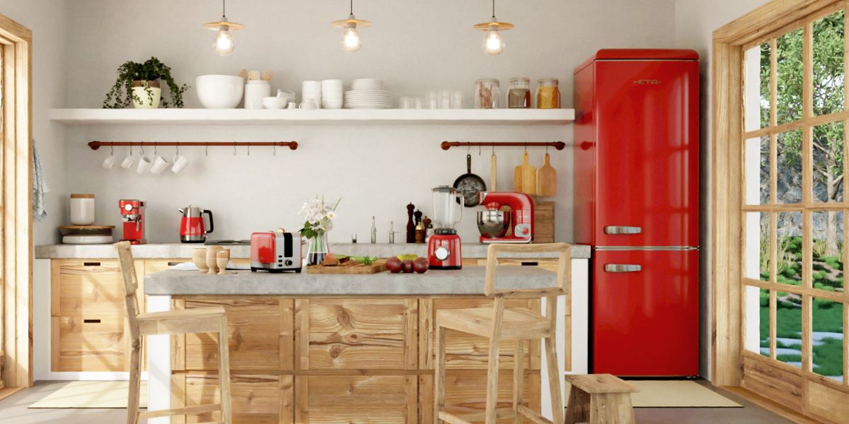 D'un autre côté, les accessoires rouges ajouteront une touche moderne aux cuisines rustiques et viennent éclairer les intérieurs dominés par le bois. Si votre cuisine est dominée par le bois, n'ayez pas peur du rouge.