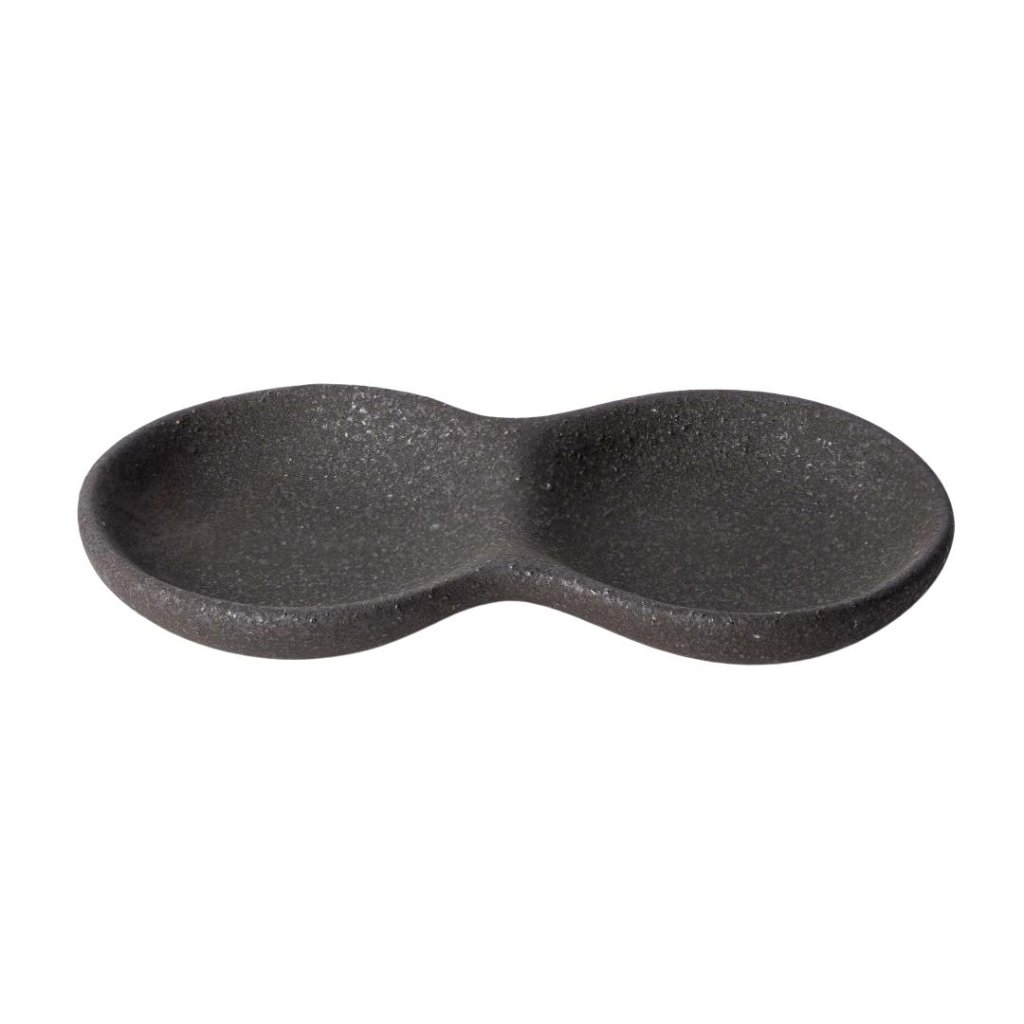 - Le bol à sauce double de 15 cm de long STONE SLAB offre un service minimaliste et clair de deux saveurs dans une pièce compacte.