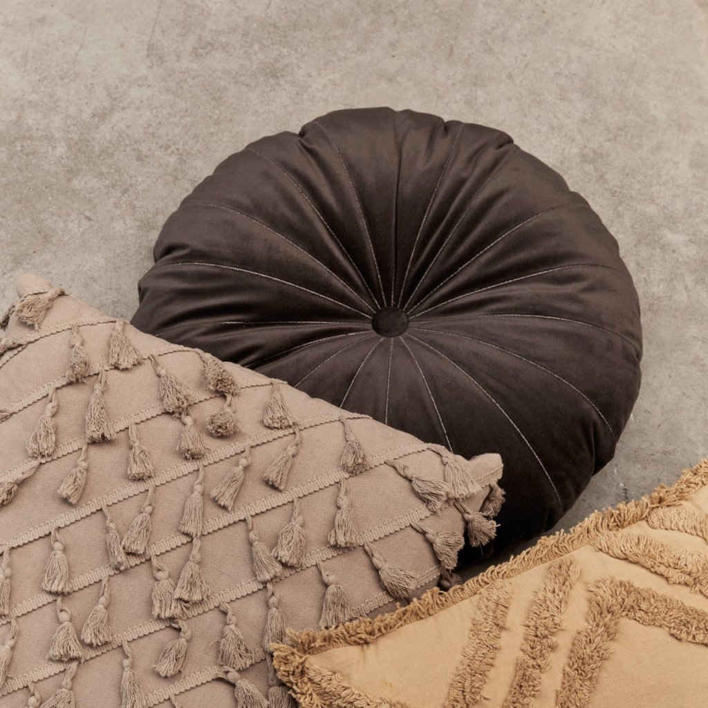 - la forme ronde avec un bouton décoratif en tissu au milieu ajoute un élément unique à l'intérieur