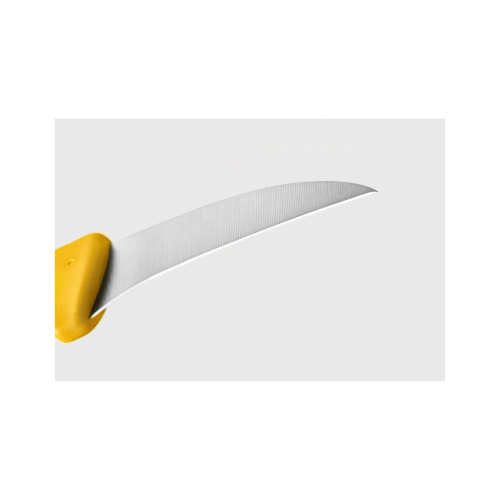 Ce couteau est particulièrement idéal pour éplucher et nettoyer les légumes et les fruits arrondis: ce petit couteau à éplucher pratique - également appelé couteau d'office - avec sa lame courte et incurvée en forme de bec d'oiseau permet d'éplucher rapidement les aliments tels que les pommes de terre ou les pommes tout en préservant les précieuses vitamines présentes sous la peau. La lame lisse de ce couteau permet des coupes très précises, il est donc également idéal pour découper et décorer les fruits et légumes.