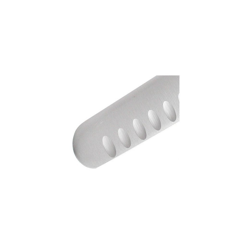 La lame dentelée creuse de ce couteau est idéale pour le jambon et les grosses pièces de viande, les fruits et les légumes. Le couteau fait partie de la gamme Gourmet, dans laquelle vous trouverez des couteaux non forgés affûtés avec une technologie spéciale garantissant un tranchant extrême des couteaux. Les poignées moulées sont en matière synthétique et il n'y a pas d'espace entre la poignée et l'acier pour des raisons d'hygiène, la connexion est rivetée. Les couteaux sont parfaitement équilibrés et tiennent confortablement dans la main.