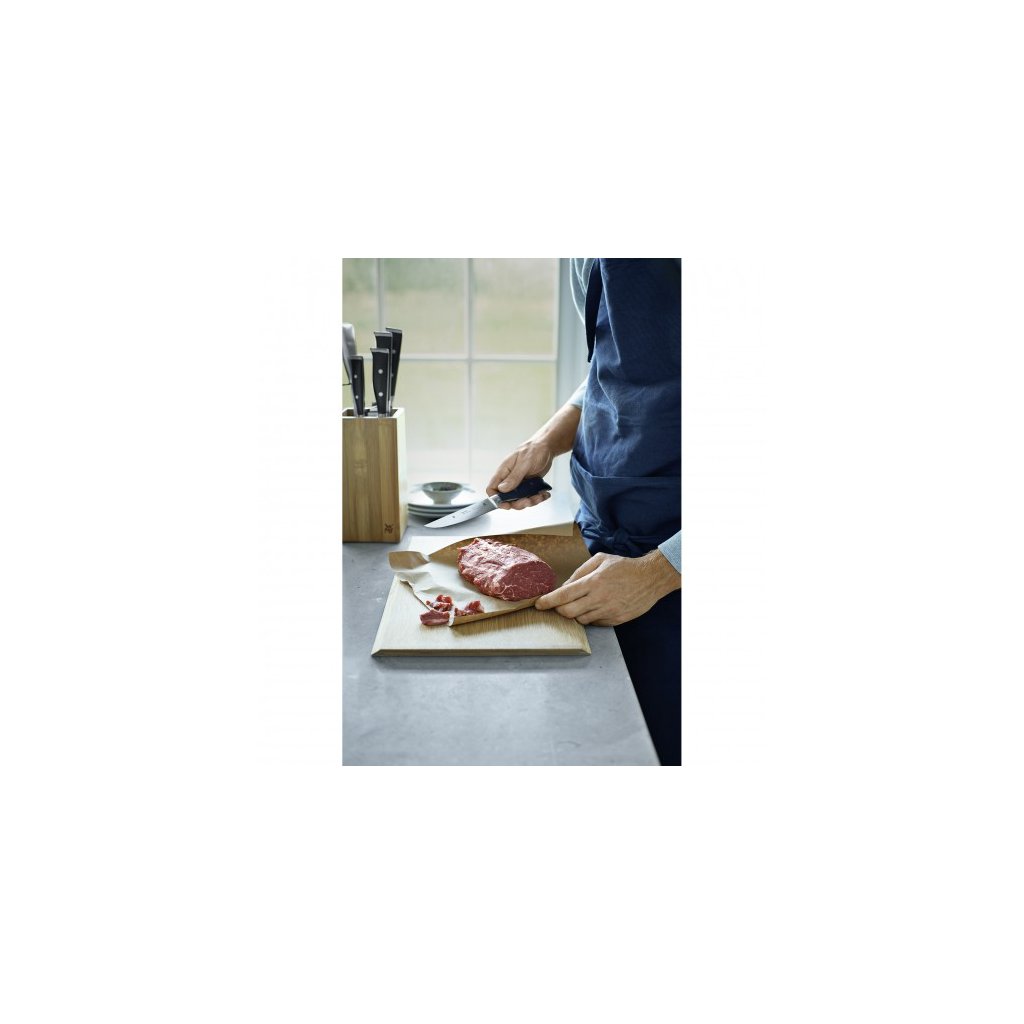 Les couteaux Grand Class combinent la tradition des couteaux forgés de qualité supérieure avec le manche riveté WMF et un design contemporain. Les lames des couteaux sont fabriquées dans un acier spécial de haute qualité. Ils sont fabriqués à l'aide des dernières technologies de fabrication Performance Cut. Il en résulte des couteaux très aiguisés, résistants aux dommages et à la casse, qui conservent leur tranchant pendant une période incroyablement longue. La durée de vie des couteaux est même deux fois plus longue que ce que les normes exigent.