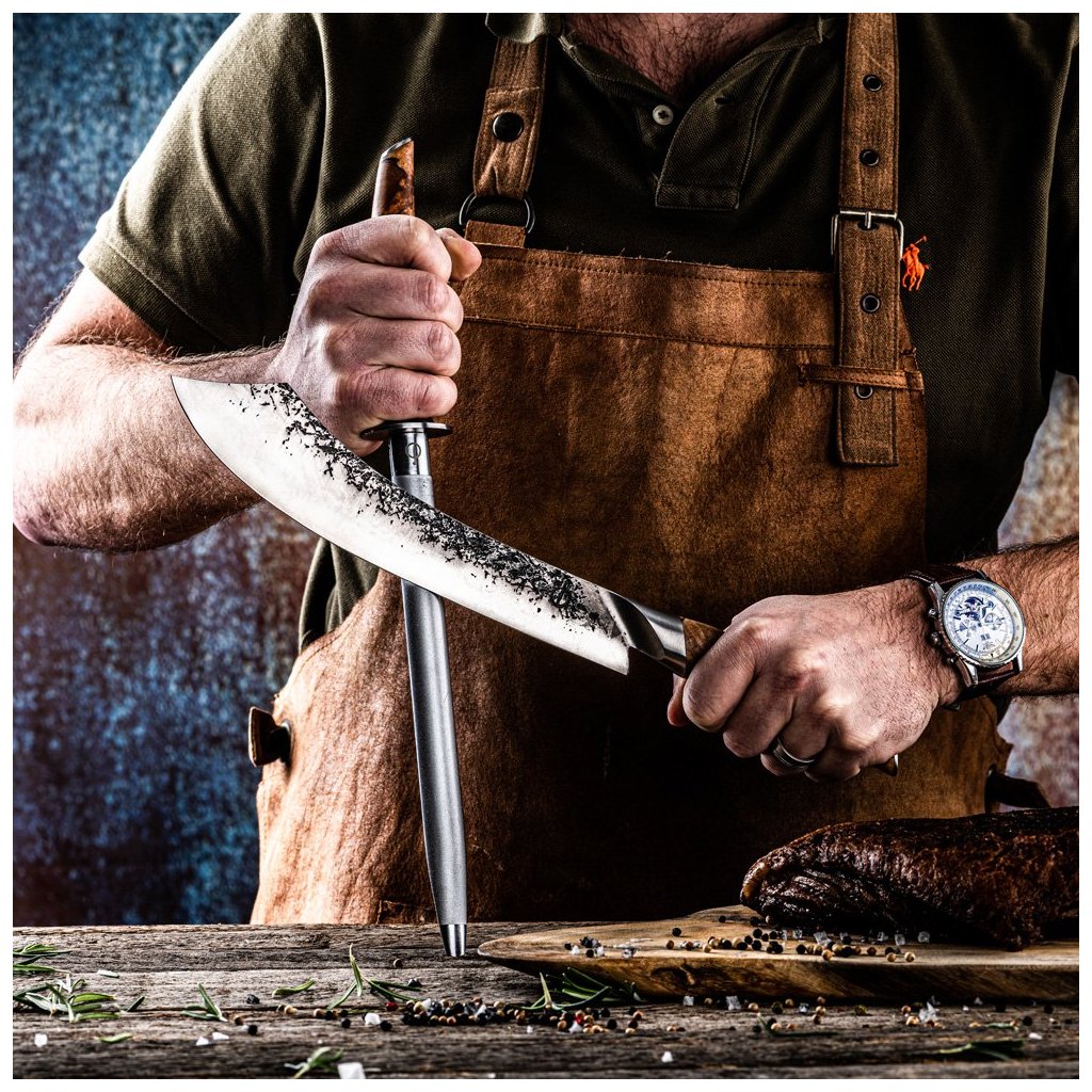 - lame forgée à la main en 5 couches avec une dureté de 60 Rockwell
