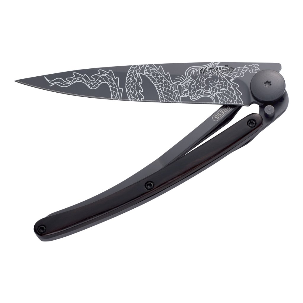 Couteau de poche tatouage noir 37 g, dragon japonais, deejo