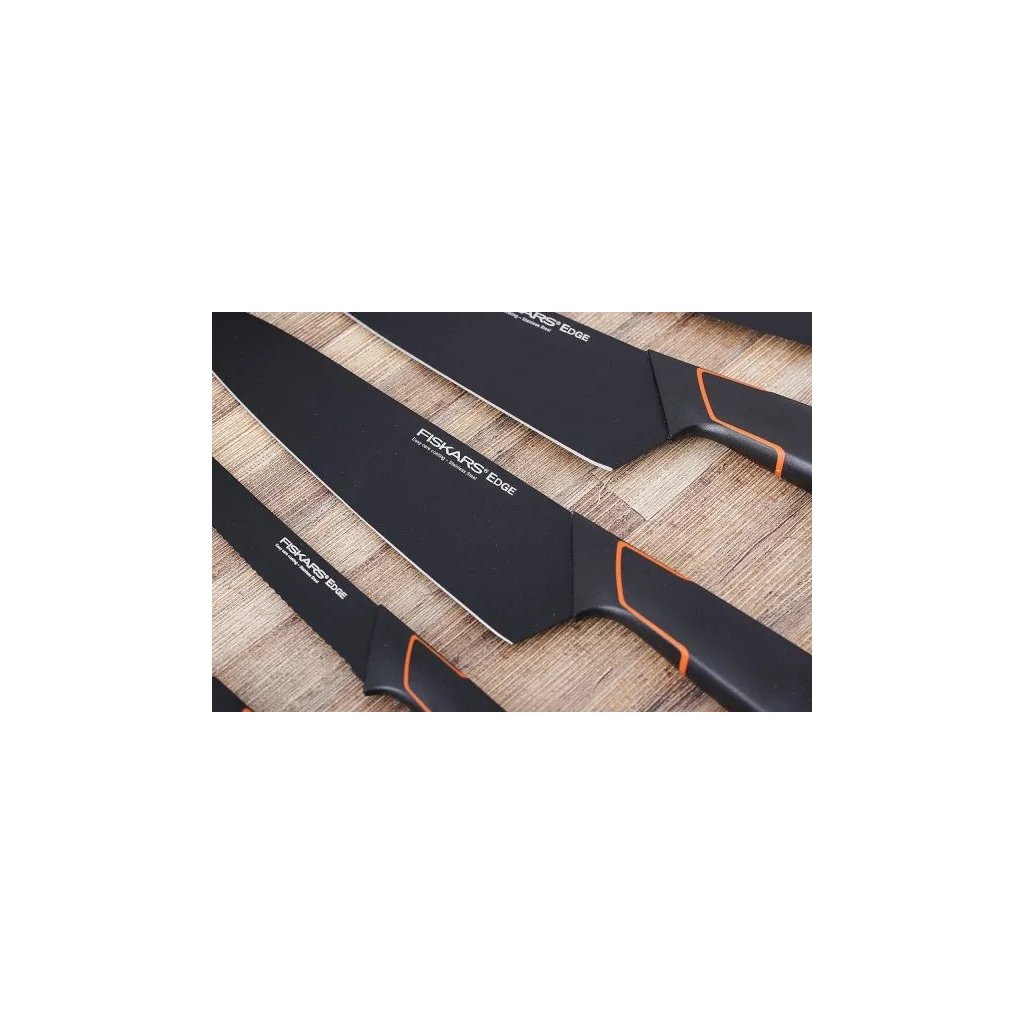 La gamme de couteaux Edge Fiskars offre un look élégant et moderne et des fonctionnalités innovantes qui rendent le travail en cuisine plus que facile. Les lames sont fabriquées en acier inoxydable de haute qualité avec un bord effilé pour un tranchant durable. Ils représentent une combinaison unique de modèles de couteaux du monde entier.