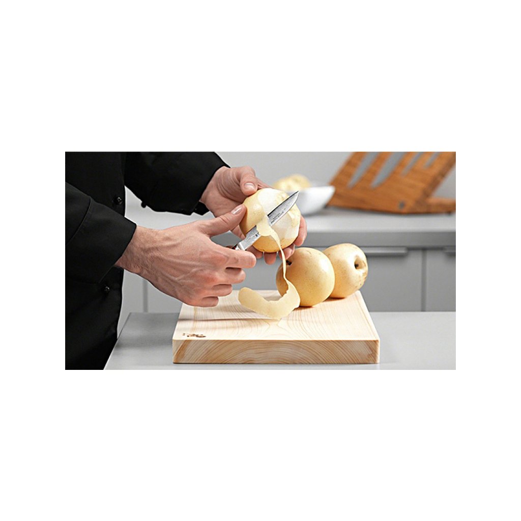 Le petit couteau japonais KUDAMONO, extrêmement tranchant, avec sa lame courte fine mais durable, est idéal pour nettoyer, éplucher et couper les fruits et légumes. Vous pouvez aller au-delà de la préparation normale des ingrédients et l'utiliser pour la sculpture décorative des fruits et légumes.