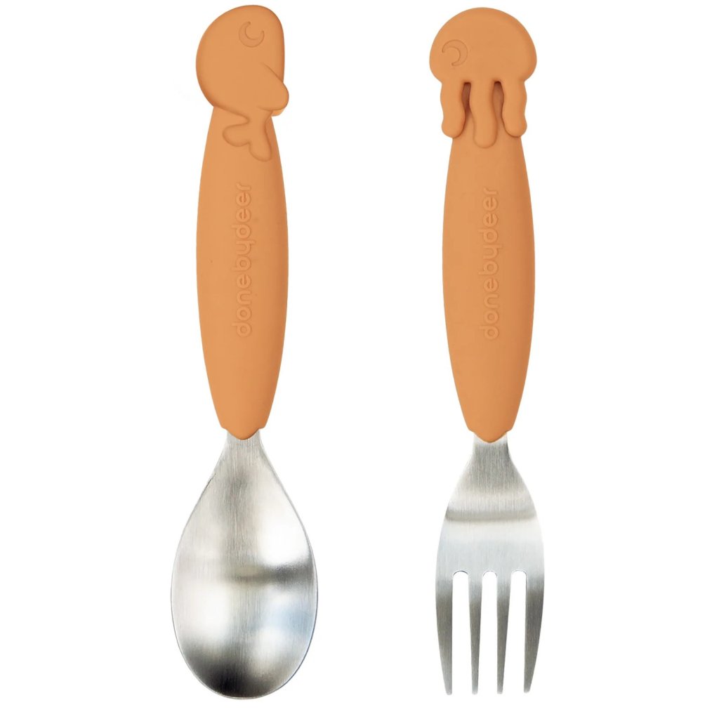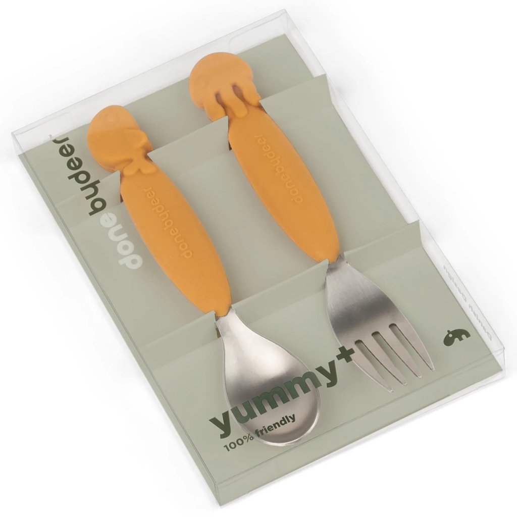 Set de couverts pour enfants YUMMYPLUS SEA FRIENDS, 2 pièces, moutarde, Done by Deer