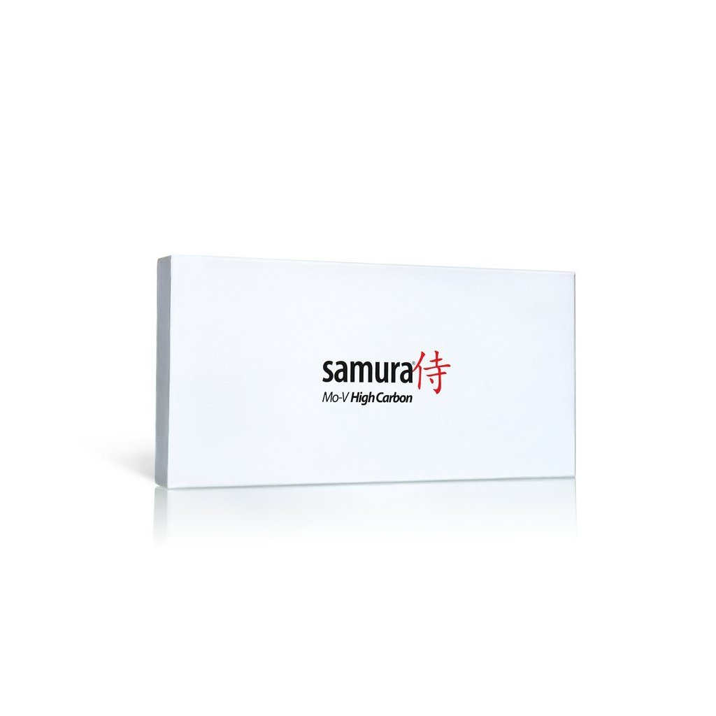 Les couteaux Samura sont fabriqués à partir du meilleur acier japonais et suédois, trempé à 58 - 61 HRC. Les lames ont une forme japonaise et une légère conicité à partir de la pointe, ce qui leur confère des performances de coupe fantastiques. Les couteaux Samura sont aiguisés à un angle de 17 degrés. C'est plus que les couteaux japonais, mais moins que les couteaux européens. Les meilleurs matériaux modernes sont utilisés pour les poignées : Micarta, G10, bois stabilisé, plastique avec une finition fine, Kraton et composites.