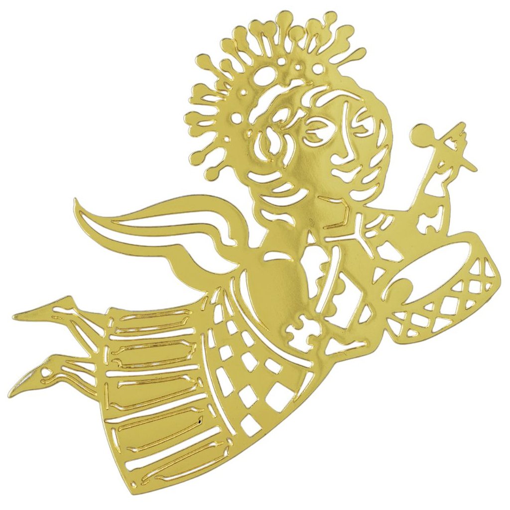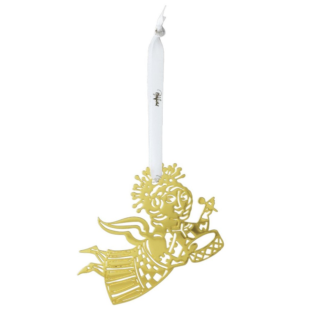 Décoration sapin de Noël MUSIC ANGEL SILHOUETTE S 6 cm, SET OF 3, or, acier inoxydable, Bjørn Wiinblad