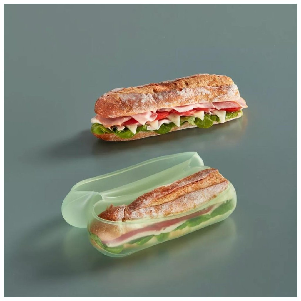Etui à sandwich réutilisable pour baguettes, set de 2 pc, vert, silicone, Lékué