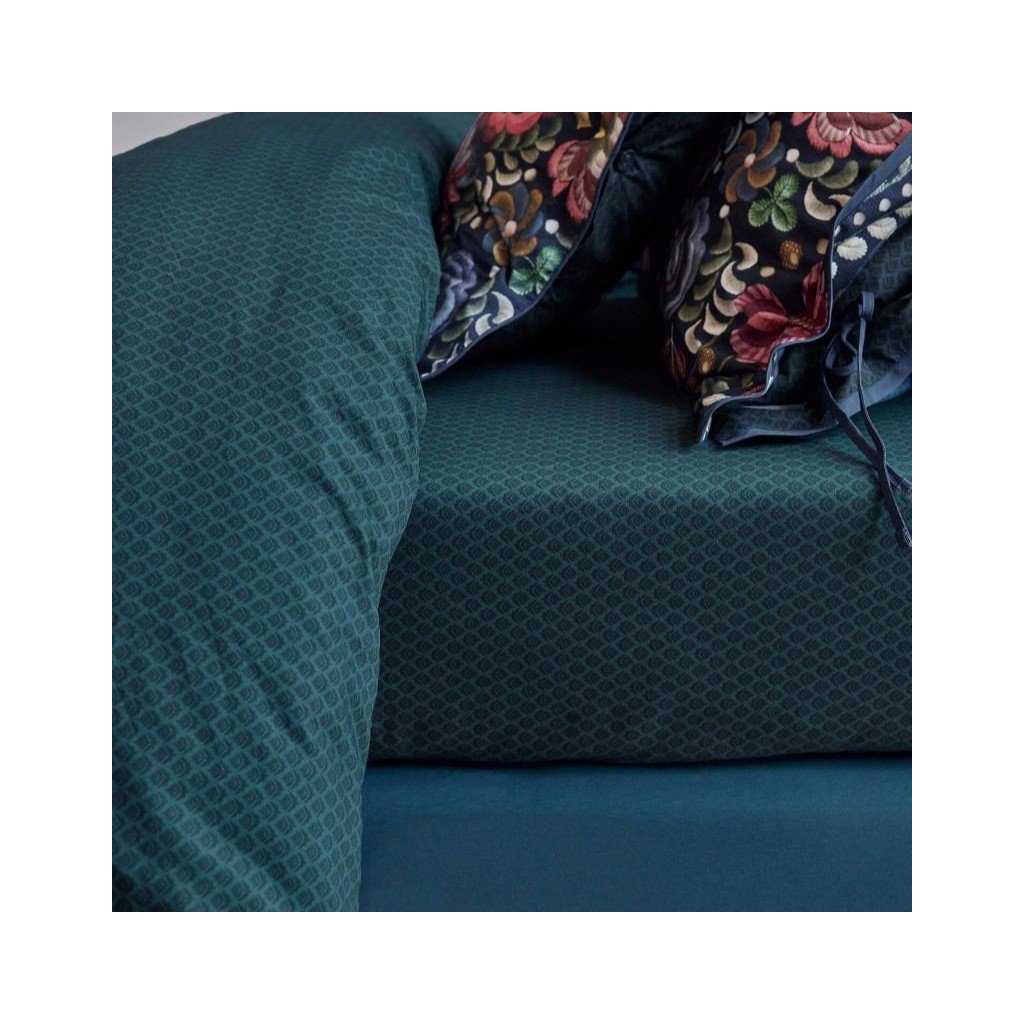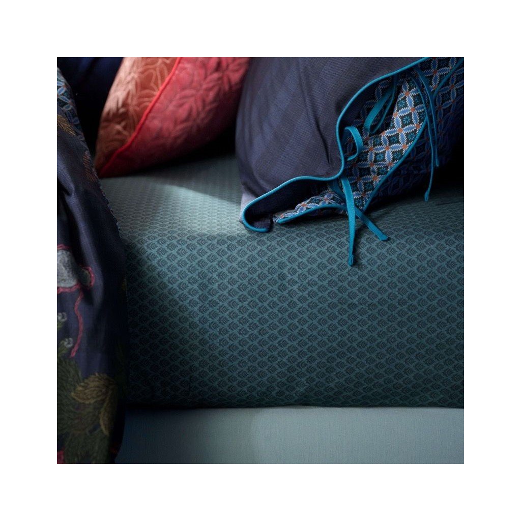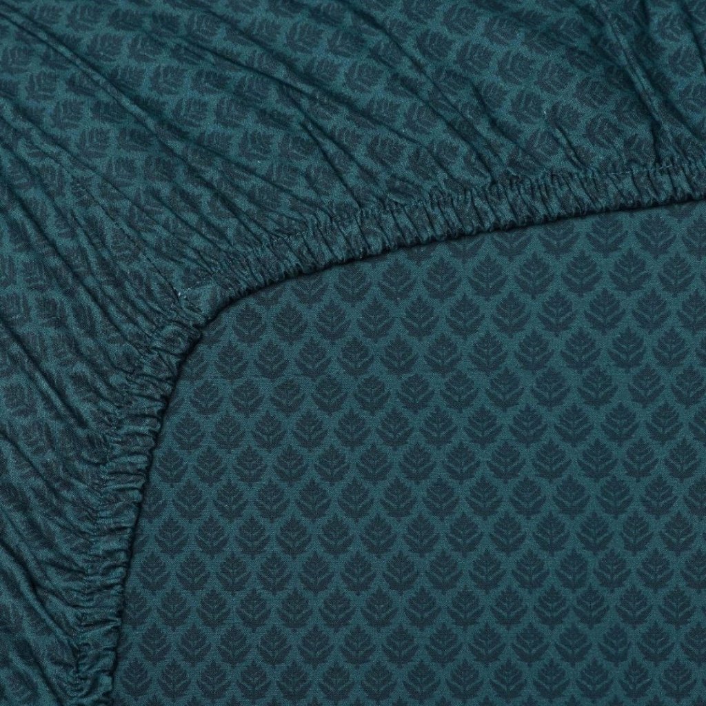 Drap housse simple MILLE LEAVES 90 x 200 cm, foncé bleu, percale de coton, Pip Stu