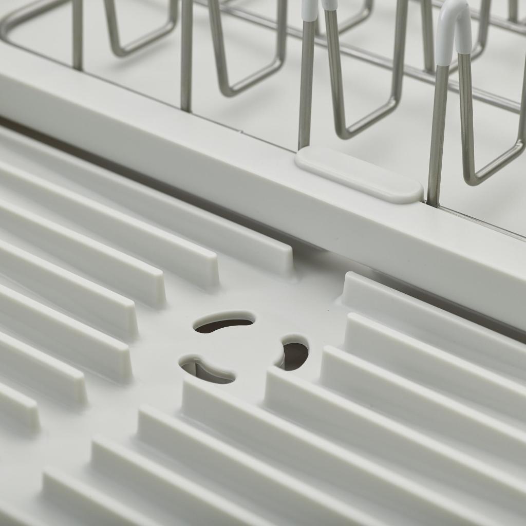 - Les rainures en relief du bac d'égouttement assurent une meilleure circulation de l'air et empêchent l'eau de stagner sous les verres et les bols.