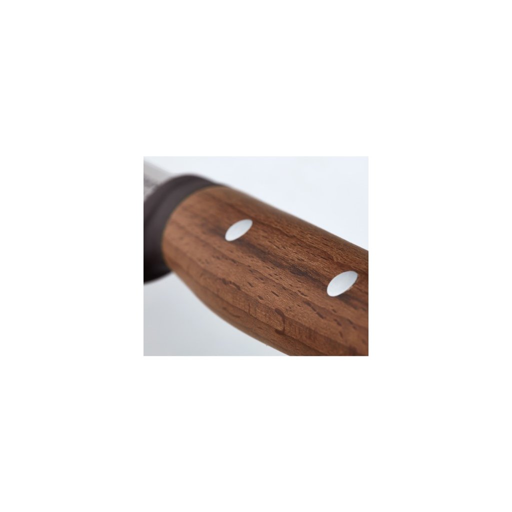 Les couteaux font partie de la gamme Urban Farmer, qui associe la beauté naturelle des outils rustiques à la précision high-tech des couteaux fabriqués à l'aide des matériaux et techniques les plus récents. Le manche est fabriqué en bois de hêtre provenant d'arbres cultivés de manière durable et est traité thermiquement pendant la production pour garantir sa durabilité et sa résistance à l'eau. Le manche, associé à la tête de lame antidérapante, assure une prise en main sûre.