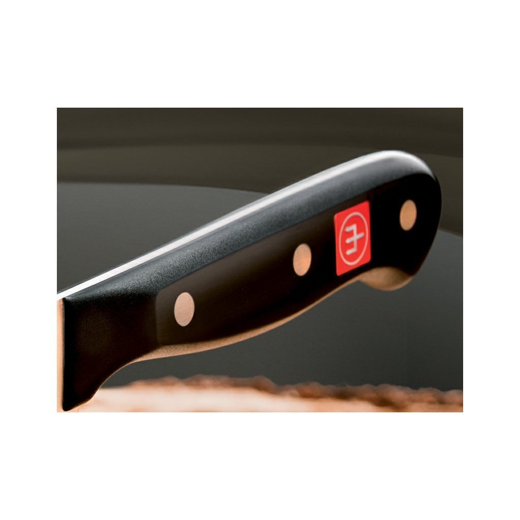 La série de couteaux Gourmet comprend des couteaux de qualité WÜSTHOF dans la conception traditionnelle populaire à trois rivets. Leurs lames sont découpées avec précision au laser dans une bande d'acier inoxydable allié X50CrMoV15. Ils sont produits en 12 à 14 étapes. Grâce à l'utilisation de matériaux de haute qualité et à un meulage de précision, ils présentent un tranchant élevé et durable.