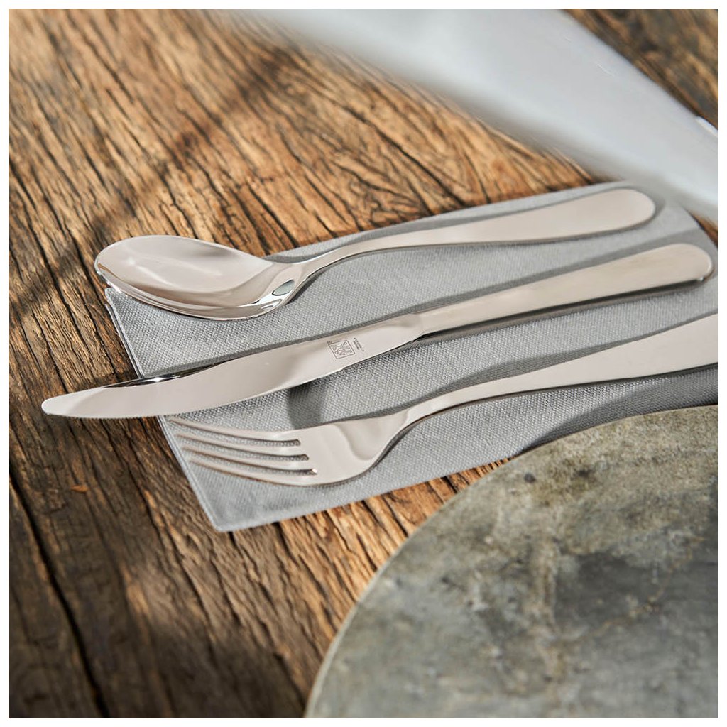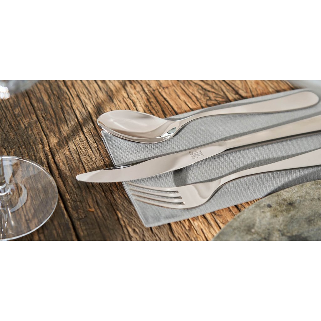 Imaginez une table jeune et légèrement dressée avec des couverts de la collection Greenwich. Les lignes fines des couverts eux-mêmes sont complétées par une silhouette très étroite, donnant une impression d'élégance et de simplicité. Le set représente entièrement les couverts pour un maximum de 12 personnes. L' acier inoxydable 18/10 de haute qualité est très résistant à la corrosion et aux autres dommages.