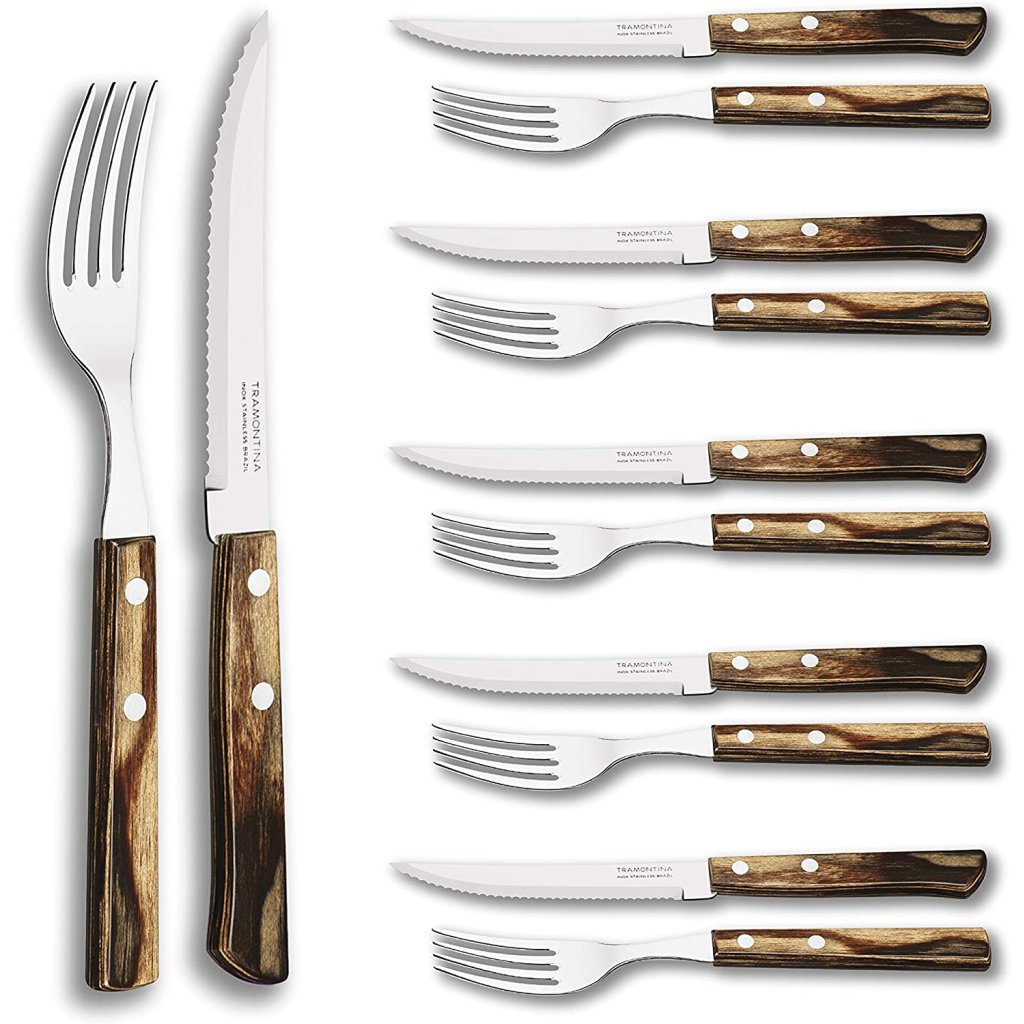 Set de couverts à steak CHURRASCO, 12 pièces, manches en bois, Tramontina