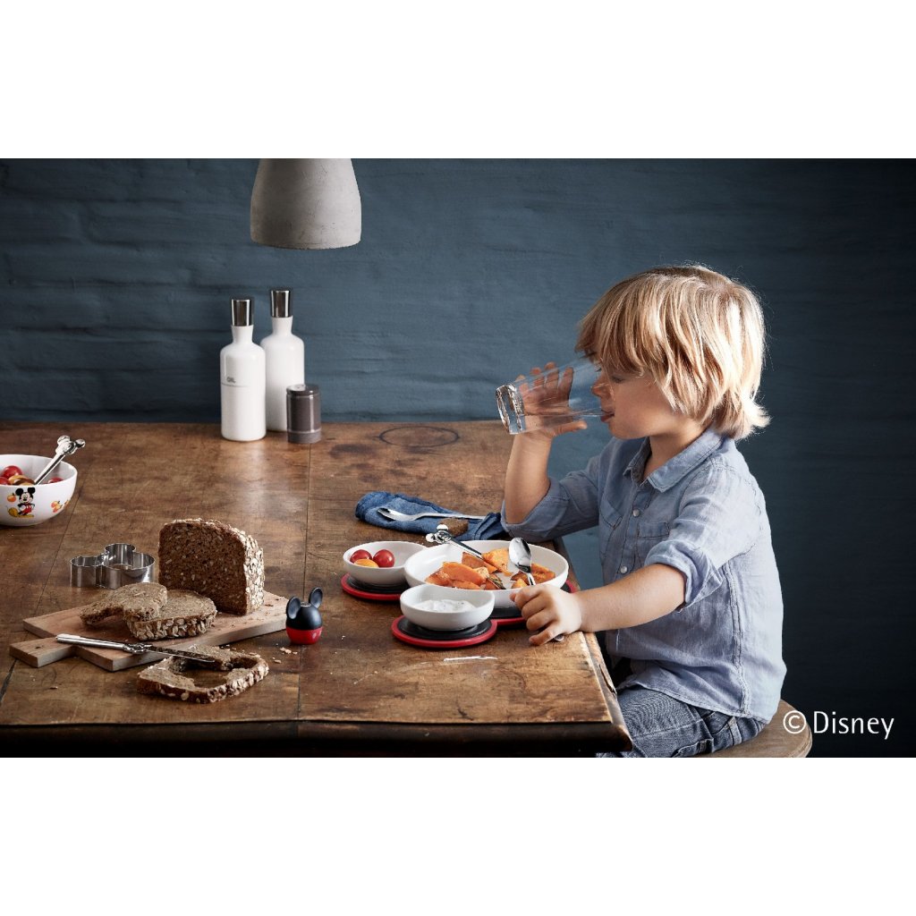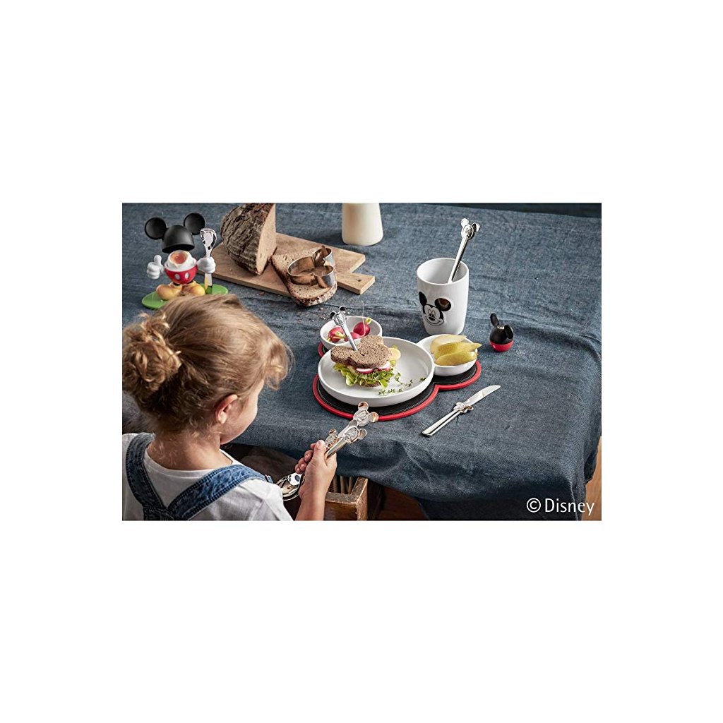 Le set quatre pièces Mickey Mouse WMF est conçu pour les amoureux de la petite souris. Comprend deux tasses en porcelaine et deux cuillères en acier inoxydable. Idéal pour les mains des petits enfants, ainsi que pour le café ou le thé des adultes. Viens jouer !