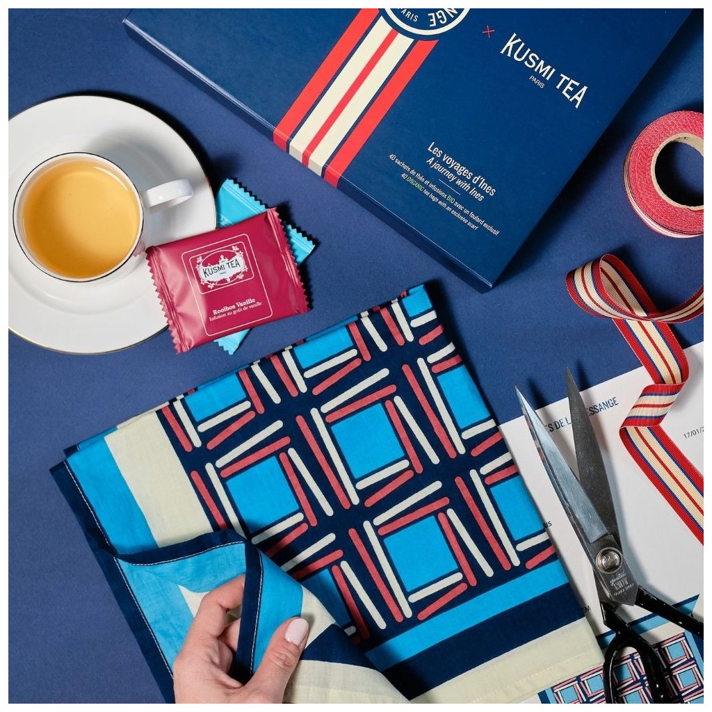 Ensemble de thé A JOURNEY WITH INES avec une écharpe, 40 sachets en mousseline, Kusmi Tea