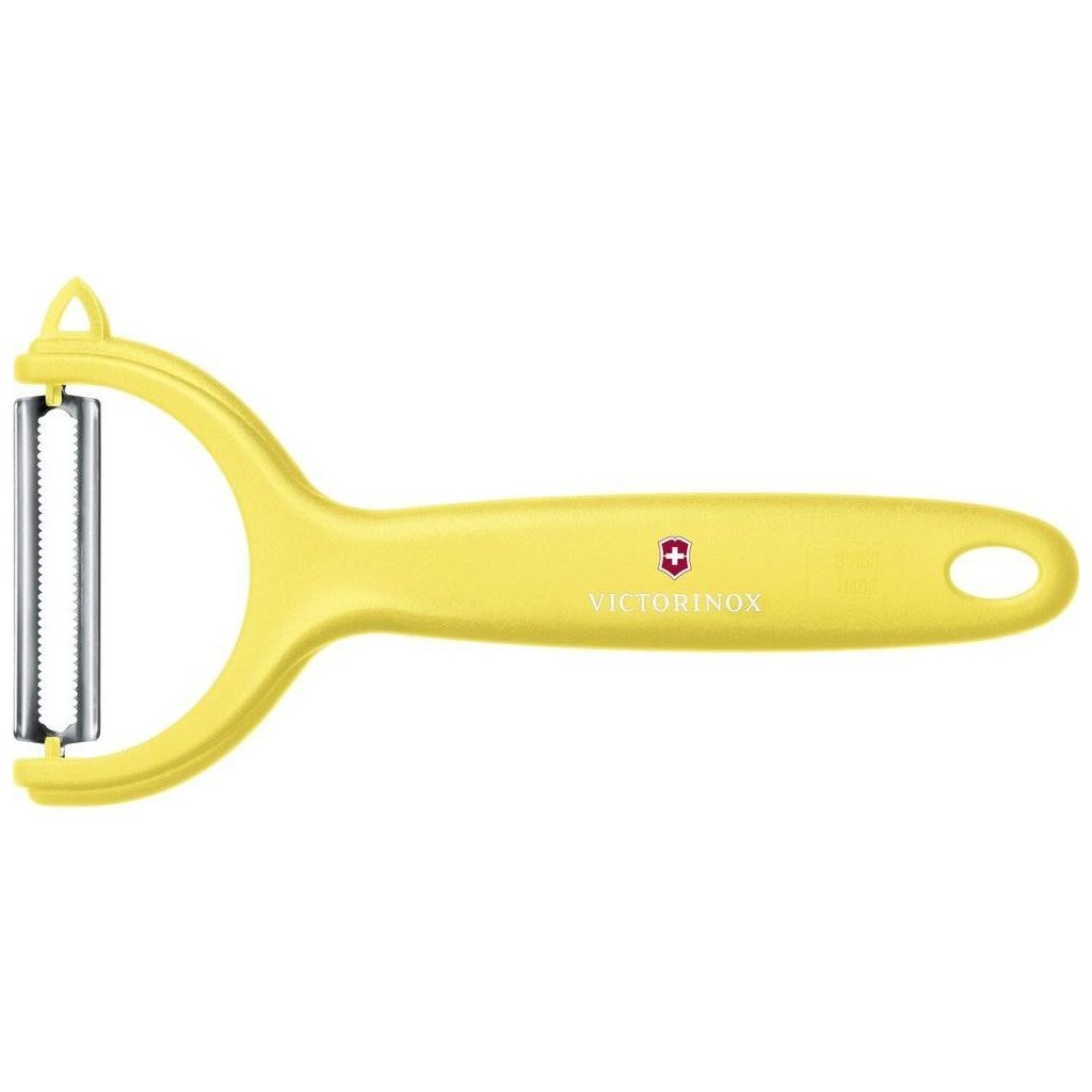 L'éplucheur rotatif en acier inoxydable, doté de microdentures et de doubles lames, convient aux tomates ou aux kiwis, par exemple. La poignée ergonomique en plastique jaune assure un travail confortable avec le grattoir. Les aides de cuisine Victorinox sont indispensables pour les travaux quotidiens en cuisine !