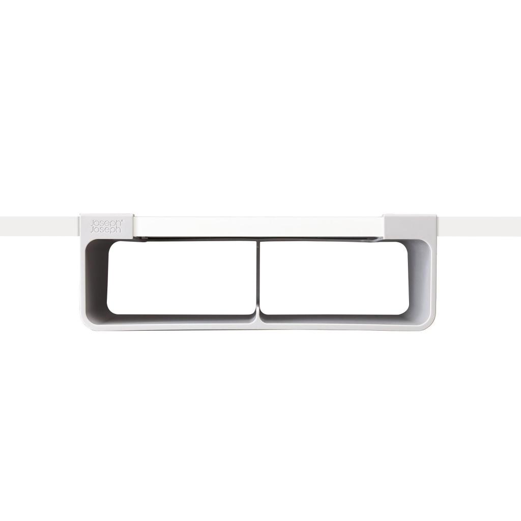 - L'organisateur Joseph Joseph CUPBOARDSTORE aide à utiliser l'espace libre sous l'étagère de l'armoire de cuisine et crée un endroit pratique pour ranger les films alimentaires, le papier d'aluminium ou les sacs.