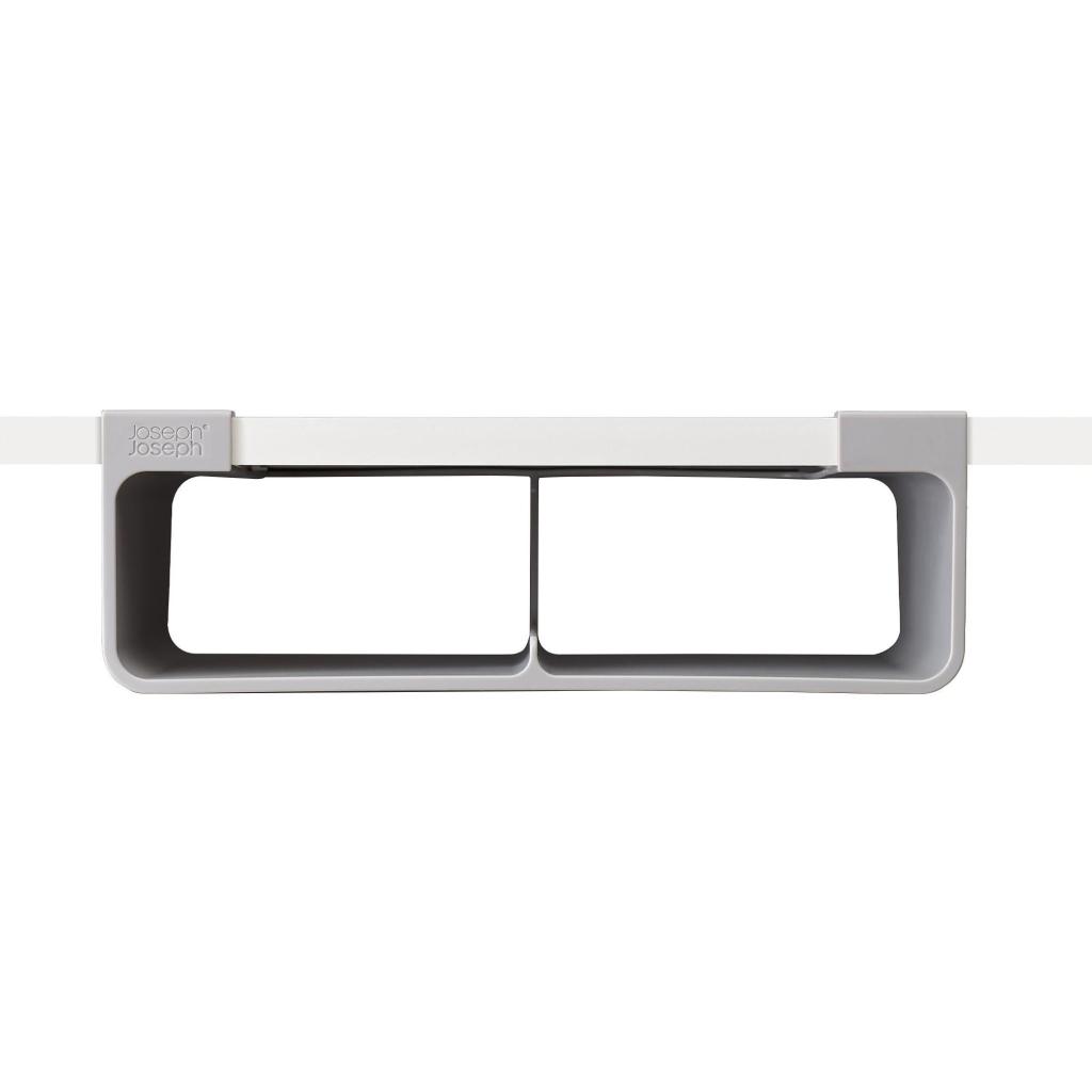 - L'organisateur Joseph Joseph CUPBOARDSTORE permet d'exploiter l'espace libre sous l'étagère d'un meuble de cuisine et crée un espace pratique pour ranger les films alimentaires, le papier aluminium ou les sacs.