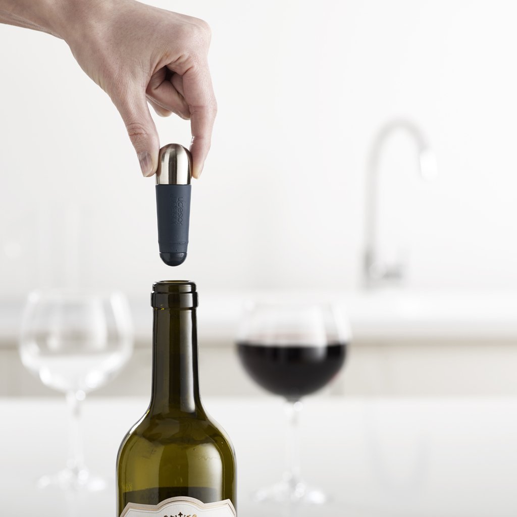 Les bouchons BarWise Twist-Lock de JOSEPH JOSEPH scellent de manière fiable une bouteille de vin non finie. Le mécanisme TWIST-LOCK assure l'étanchéité de la bouteille en tournant la partie en acier inoxydable du bouchon. Si la bouteille est hermétique, un anneau vert est visible sur le bouchon. Tournez la partie en acier inoxydable dans le sens inverse pour ouvrir la bouteille. Les bouchons ne sont pas destinés à la fermeture du champagne et des boissons gazeuses. L'ensemble comprend deux bouchons.