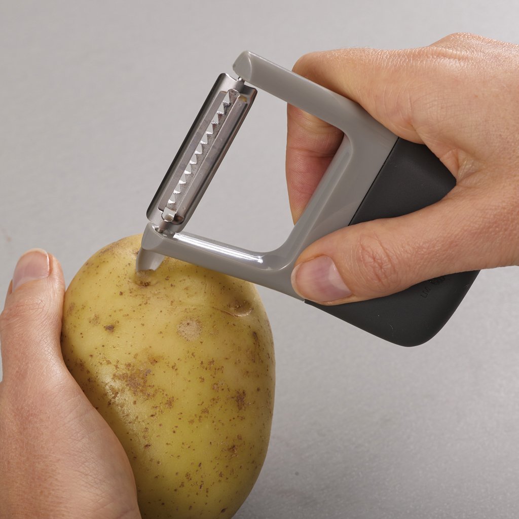 Duo est une gamme innovante d'accessoires de cuisine de Joseph Joseph qui apporte des solutions ingénieuses à chaque cuisine. La gamme est soigneusement conçue en mettant l'accent sur la simplicité, l'innovation, la fonctionnalité et la qualité. Chaque produit de cette gamme est fabriqué à partir de matériaux de haute qualité et dans une large gamme de couleurs, de sorte que vous pouvez les assortir à votre intérieur ou à d'autres accessoires et ustensiles de cuisine. L'éplucheuse à julienne pour préparer de fines lamelles de carottes, de céleri ou de radis fait partie de cette gamme. Lame en acier inoxydable de haute qualité, manche ergonomique, éliminateur de cavités de pommes de terre.
