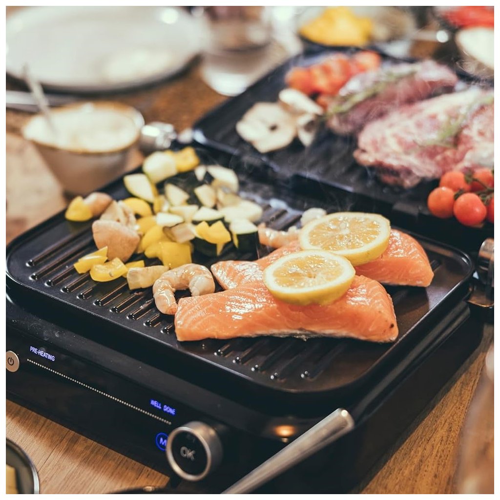 - 7 programmes automatiques, dont "Perfect Steak", qui détecte l'épaisseur des aliments et indique quand les différents niveaux de brunissement ont été atteints