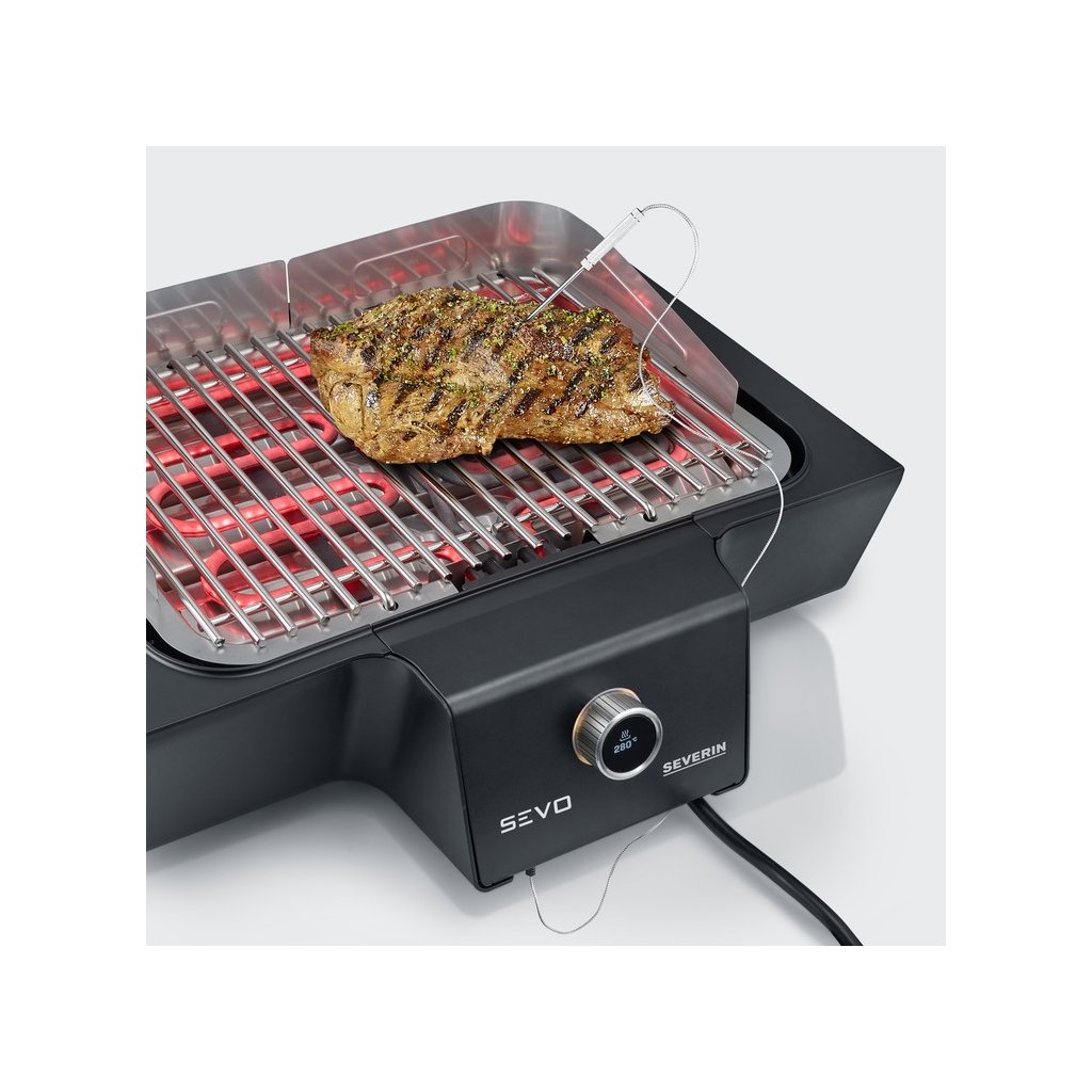 Gril de table avec minuterie intégrée et thermomètre de gril pour une préparation des aliments la plus simple possible. Severin PG 8104 SEVO G avec BoostZone 500°C pour les steaks. Le double élément chauffant assure une performance maximale du gril. Réglage facile de la température sur l'écran numérique OLED. Les pièces amovibles facilitent le nettoyage.