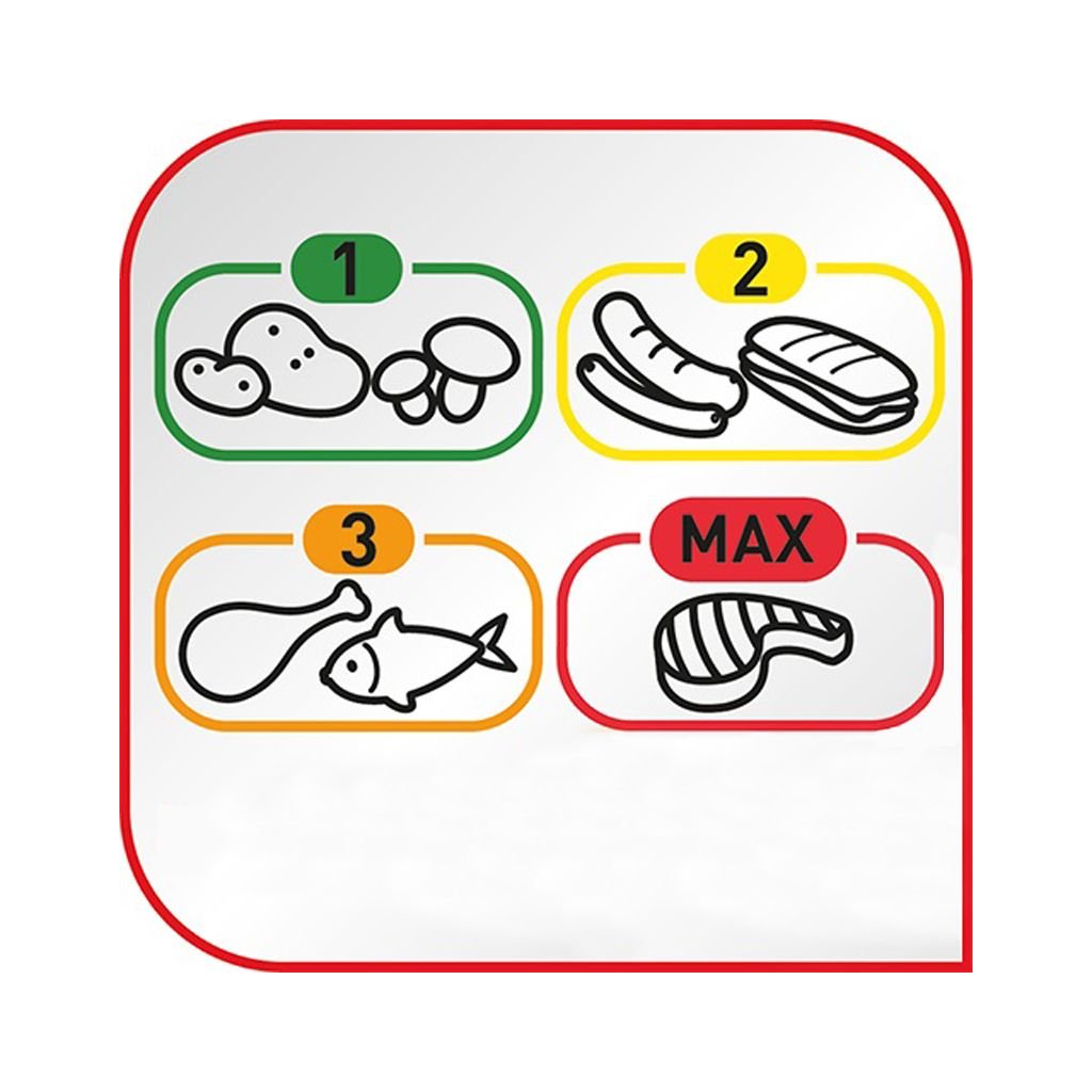 Gril électrique de contact avec une puissance de 2400 W. Grande surface de grillage de 718 cm2. Thermostat à 3 positions et mode Max (adapté aux steaks, tomates, etc.). Minuterie numérique avec signal sonore. Vous pouvez utiliser le gril fermé ou l'étendre pour obtenir une plus grande surface de grillage. Un bol pour l'excès de graisse ou de jus est inclus. Les grilles du gril sont en fonte d'aluminium avec une surface antiadhésive. Les plaques de gril et le plateau d'égouttement vont au lave-vaisselle. |