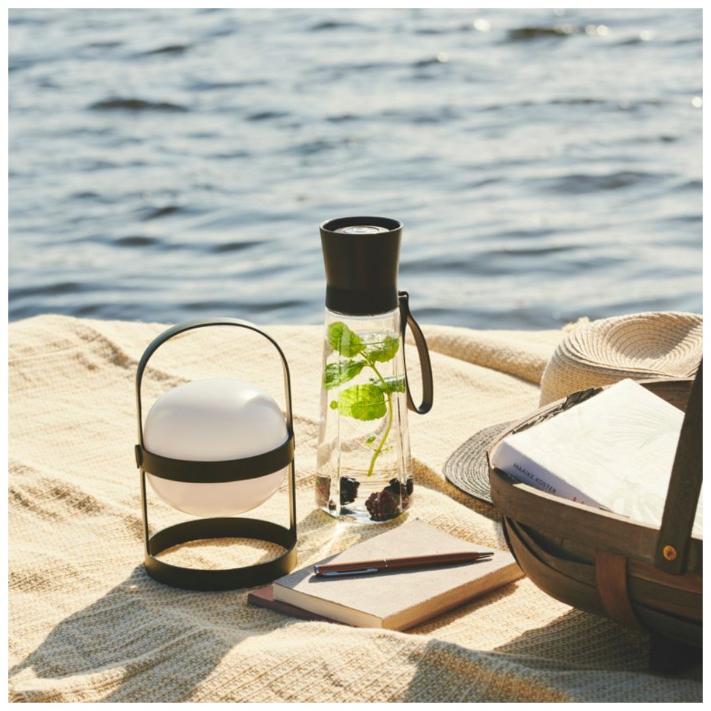 La lampe est facile à déplacer grâce à une poignée pratique, elle peut être utilisée à l'intérieur comme à l'extérieur et son abat-jour a une jolie forme douce et organique qui imite les galets que l'on trouve sur la plage - oui, ces galets lisses que l'on a toujours envie de toucher !
