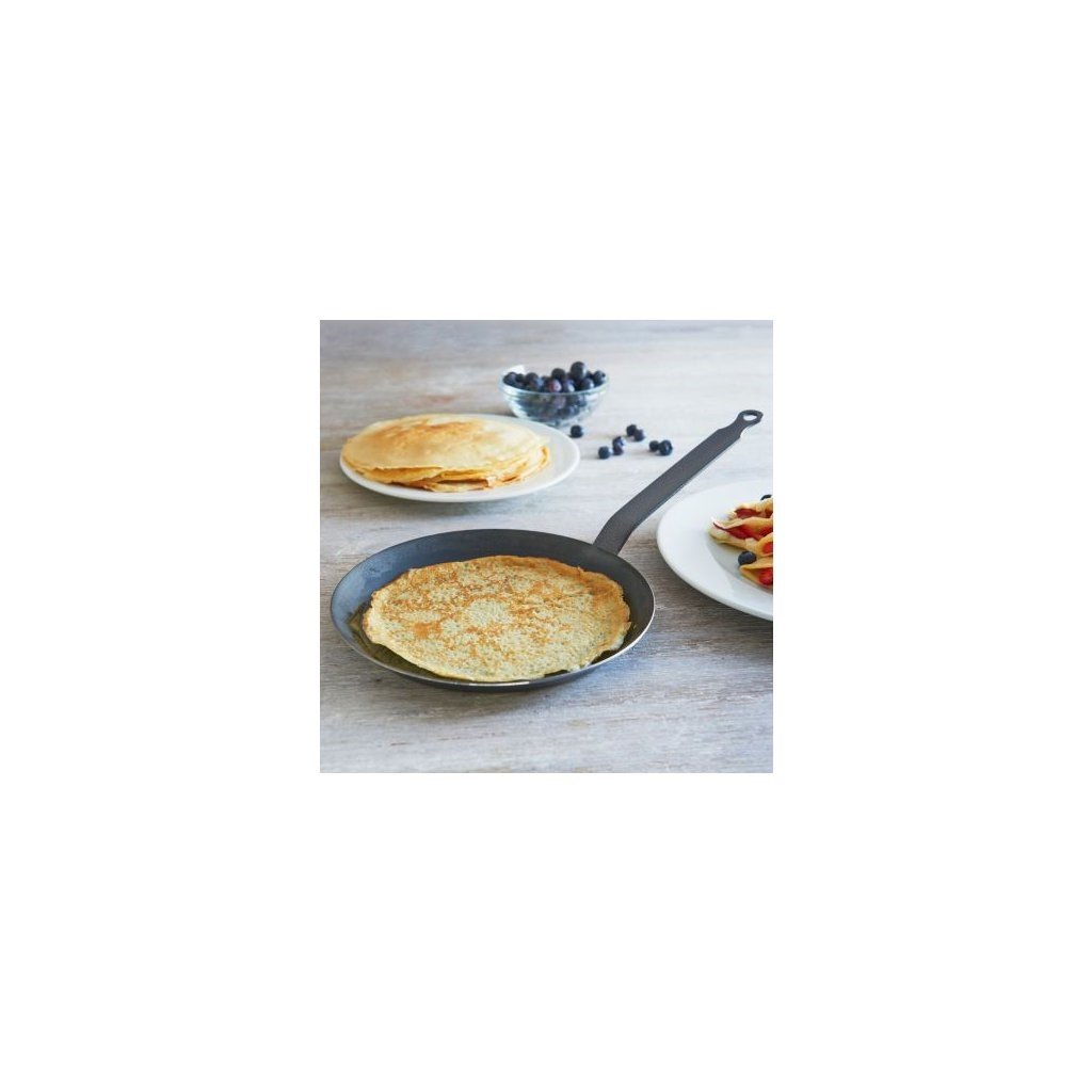 La poêle à crêpes du fabricant français De Buyer a un diamètre de 22 cm et une poignée ergonomique avec une "courbe française" pour une manipulation sûre et confortable. La plaque à crêpes est parfaite pour préparer des crêpes traditionnelles croustillantes mais moelleuses. Le bord bas de la poêle permet de retourner facilement les crêpes et de les servir commodément. La poêle peut être utilisée sur tous les types de cuisinières, y compris la populaire induction, mais à une température modérée.